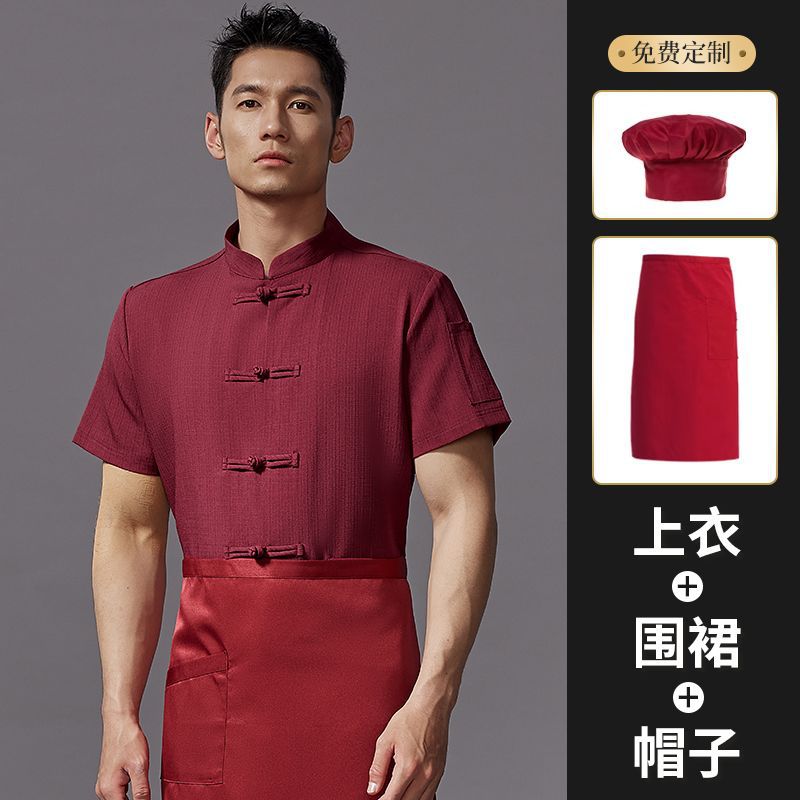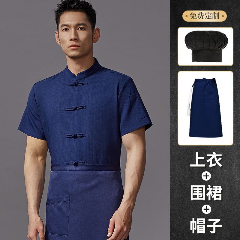 여름용 통기성 아이스 실크 중국식 반팔 요리사복, 식당, 호텔, 주방, 식당, 케이터링 작업복 (남성용)스토어 가기