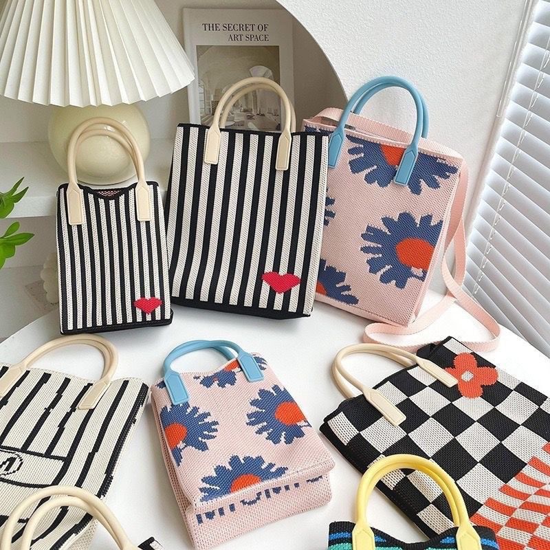 새로운 바느질 한국식 올매치 원 숄더 크로스 바디 백 코인 지갑 작은 핸드백 다이아몬드 니트 휴대 전화 가방 여성 여행