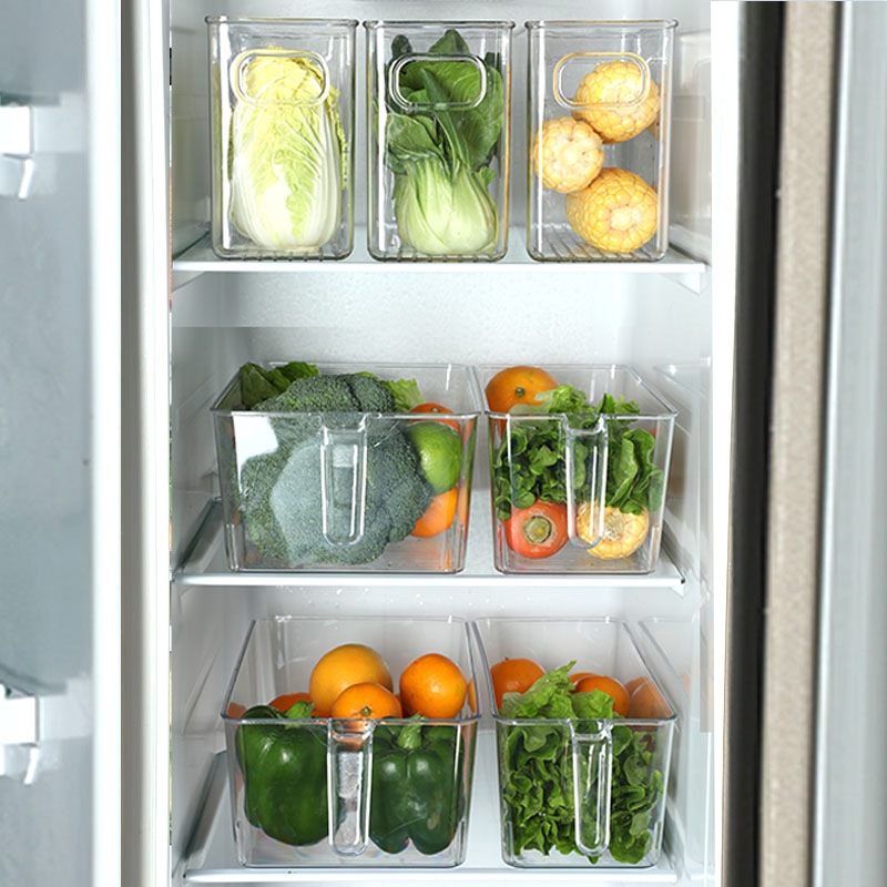 냉장고 저장 상자 가정용 두꺼운 투명 식품 등급 신선한 보관 상자 음료 멀티 스타일 쌓을 수있는 야채 냉동고 상자