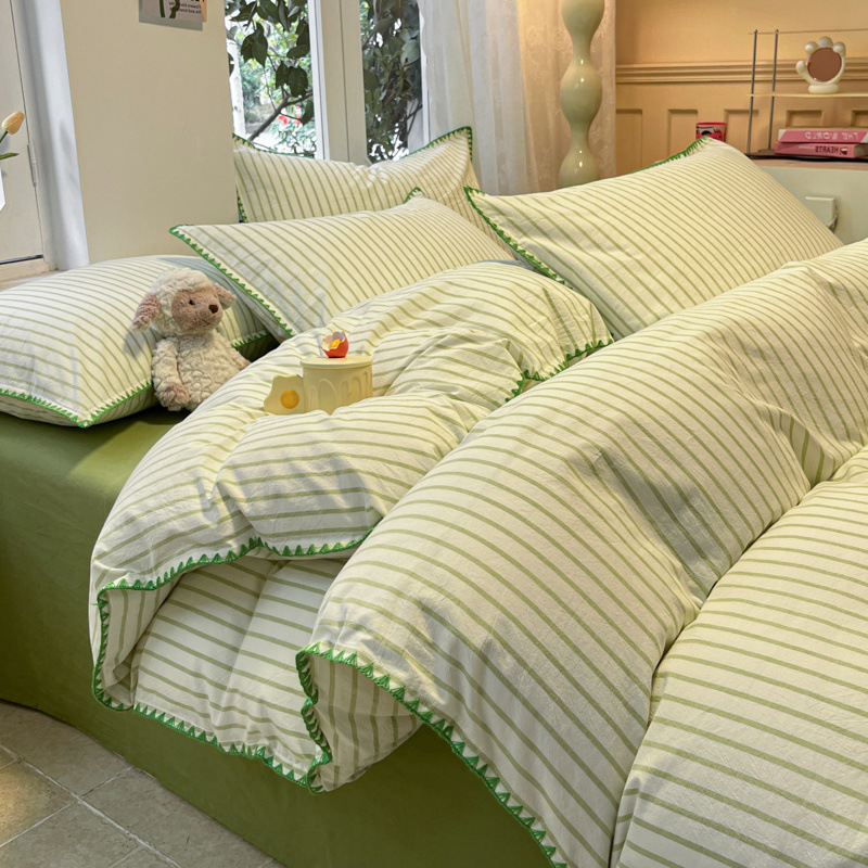 면 세척 된 면 삼각형 바늘 회색 줄무늬 침대 4 종 세트 클래스 모성 및 유아 등급 면 1 미터 5 베드 퀼트 커버스토어 가기