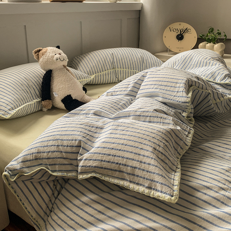 면 세척 된 면 삼각형 바늘 회색 줄무늬 침대 4 종 세트 클래스 모성 및 유아 등급 면 1 미터 5 베드 퀼트 커버