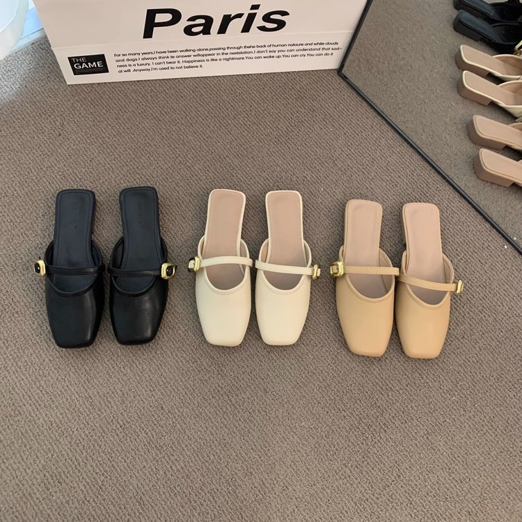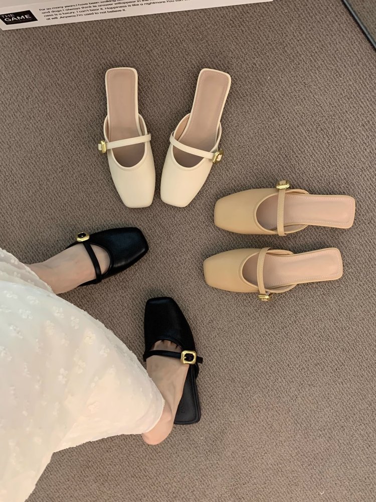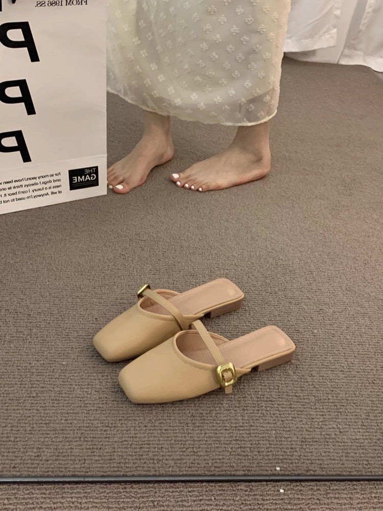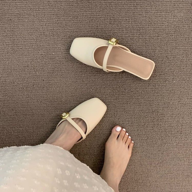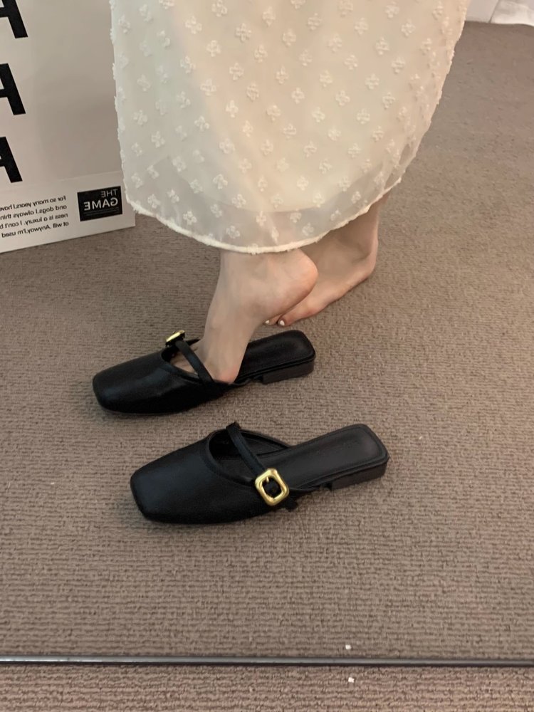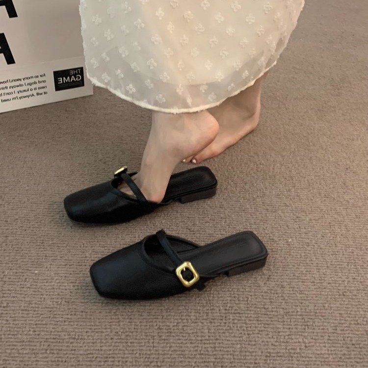 프랑스 스타일 Baotou 하프 슬리퍼 여성 아우터 착용 2025 새로운 도착 얕은 입 올매치 소프트 가죽 뮬러 신발 Mary Jane 신발스토어 가기