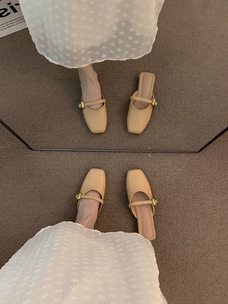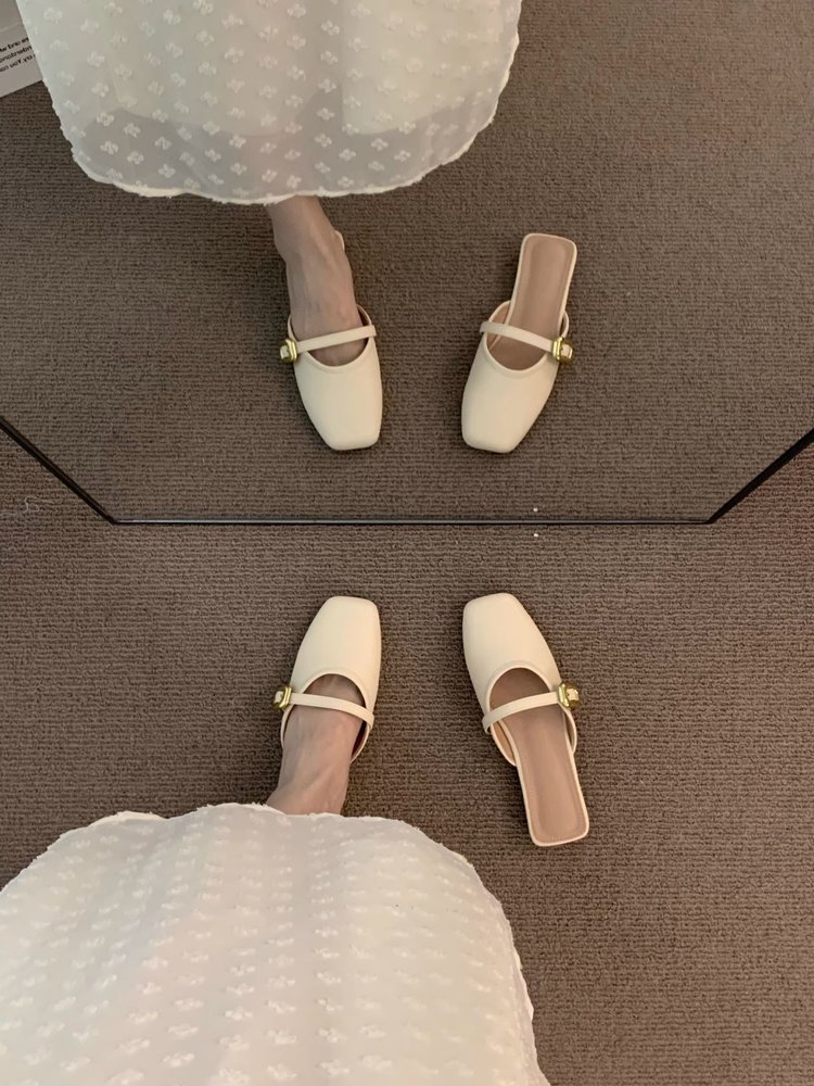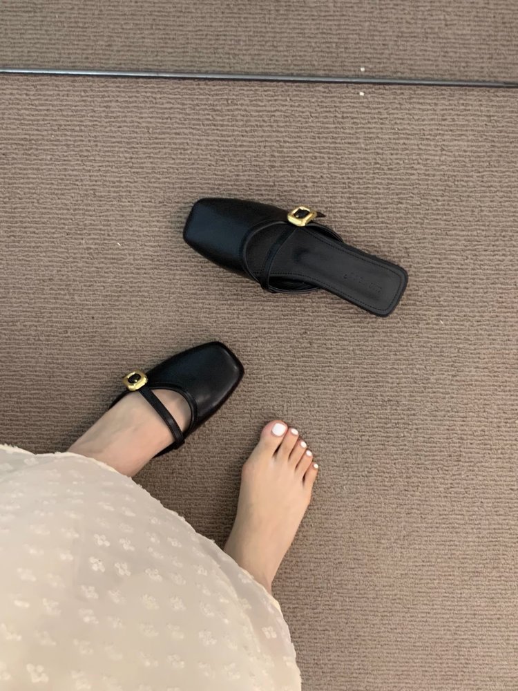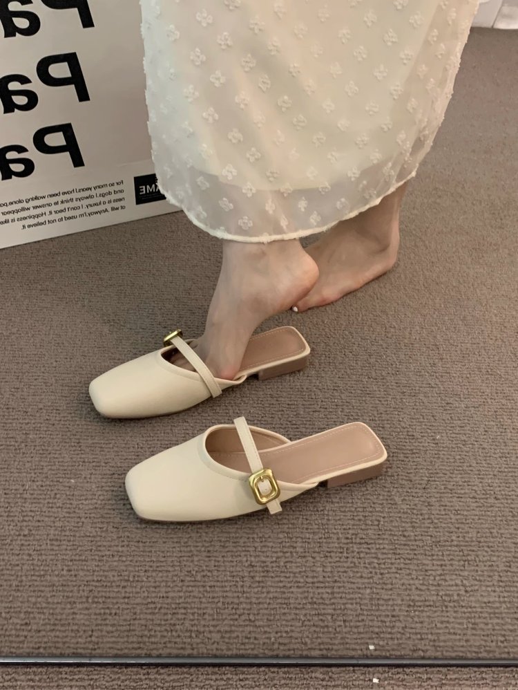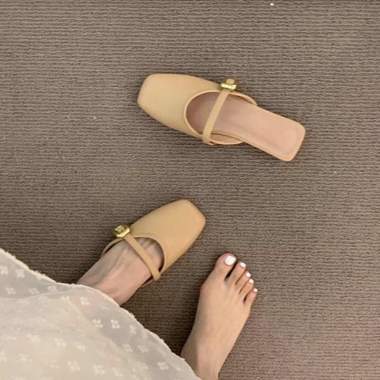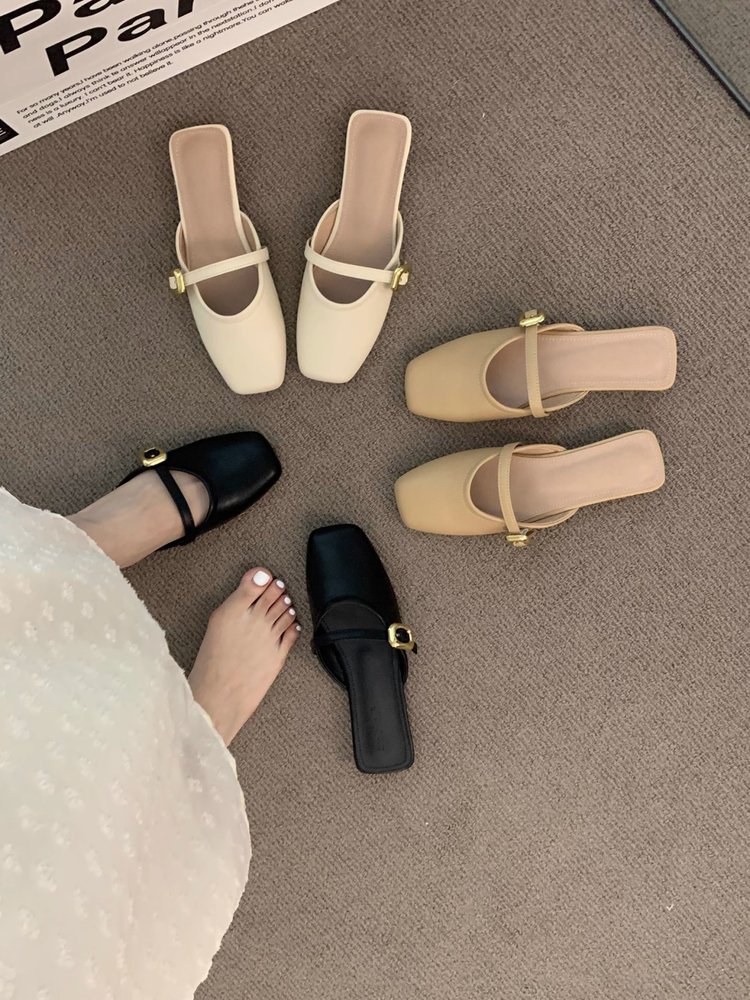 프랑스 스타일 Baotou 하프 슬리퍼 여성 아우터 착용 2025 새로운 도착 얕은 입 올매치 소프트 가죽 뮬러 신발 Mary Jane 신발스토어 가기