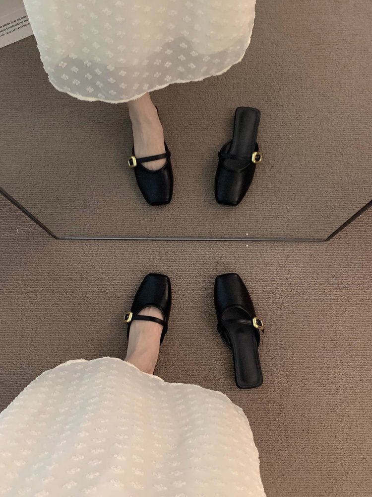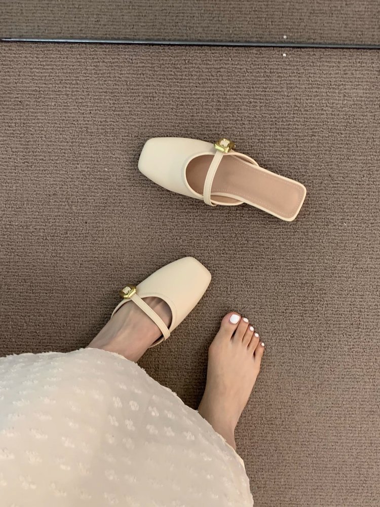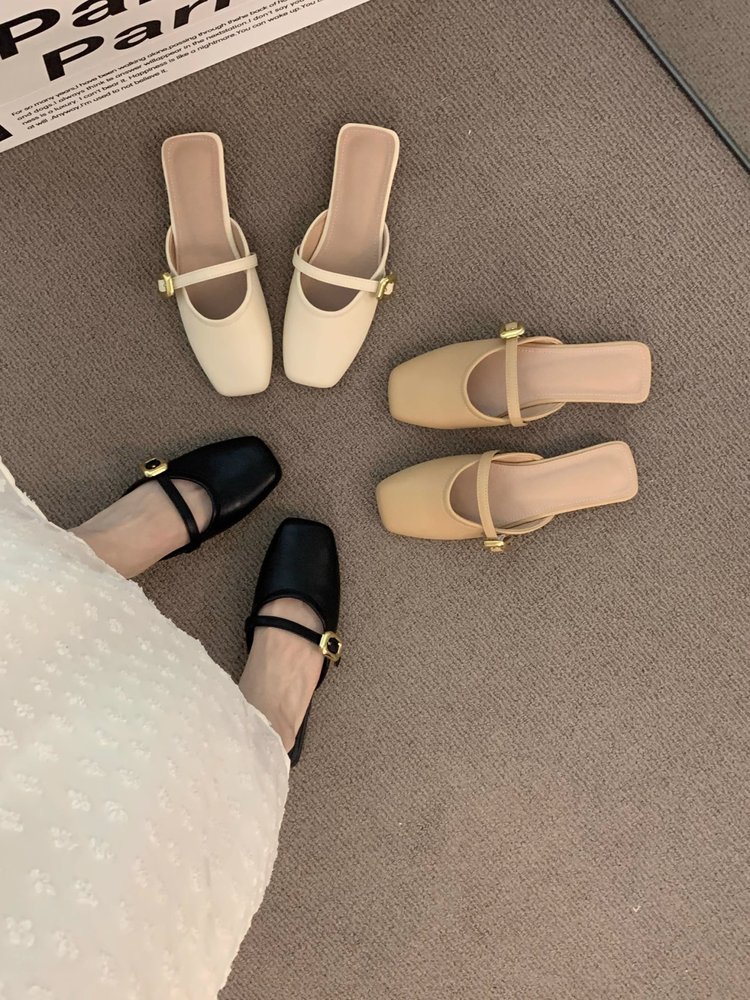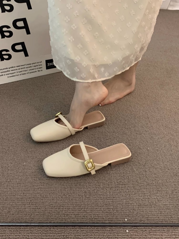 프랑스 스타일 Baotou 하프 슬리퍼 여성 아우터 착용 2025 새로운 도착 얕은 입 올매치 소프트 가죽 뮬러 신발 Mary Jane 신발