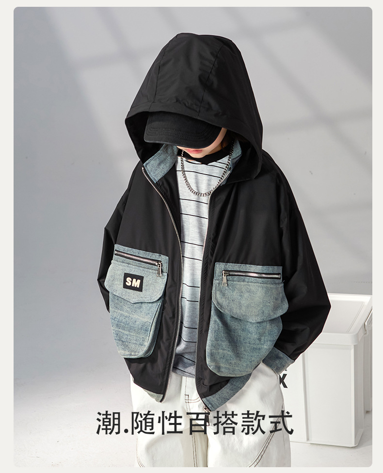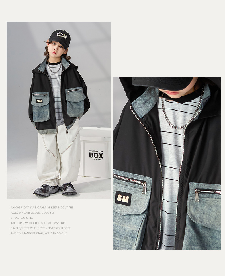 소년의 봄 작업복 코트 2025 새로운 도착 대형 어린이 봄과 가을 재킷 소년의 봄 데님 최고 유행스토어 가기