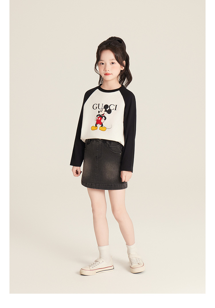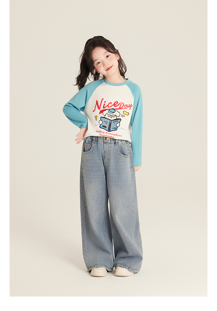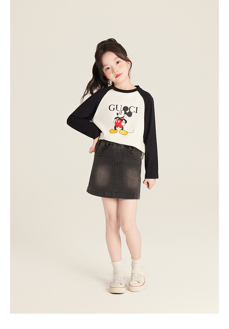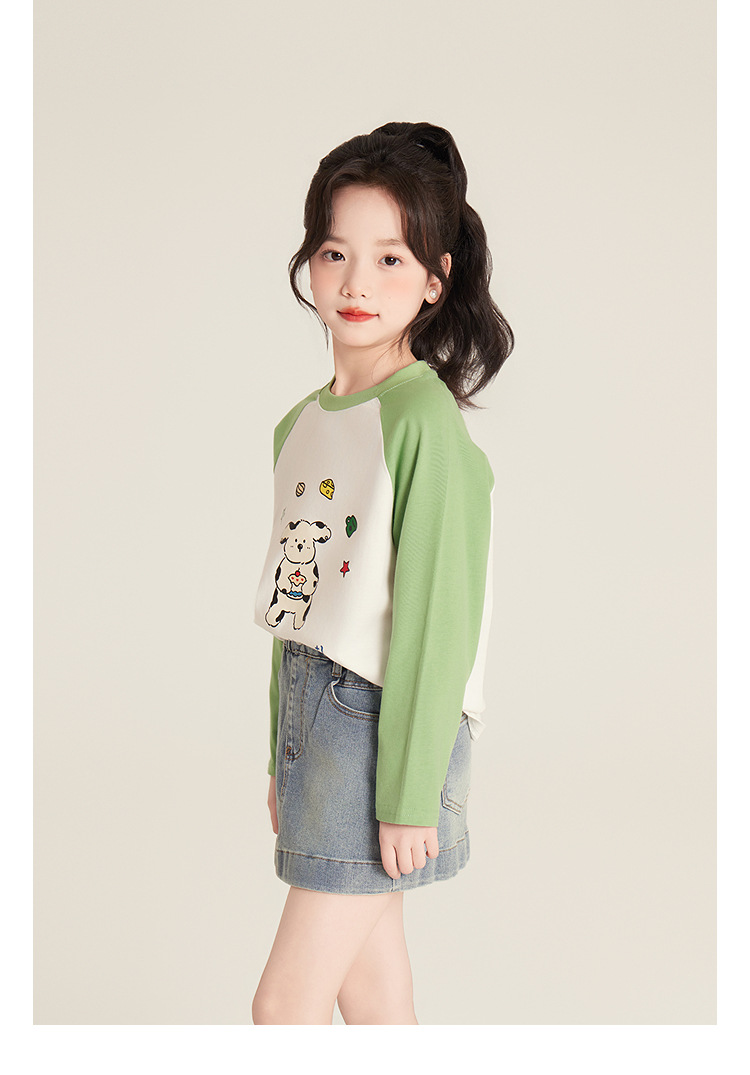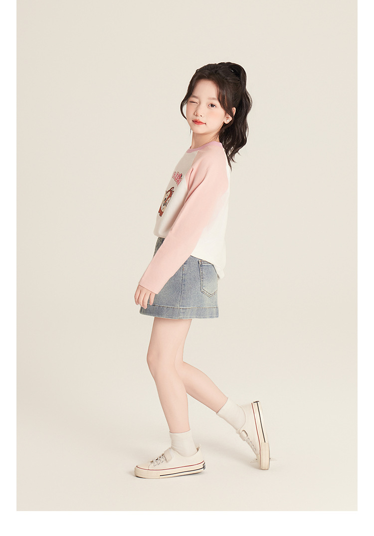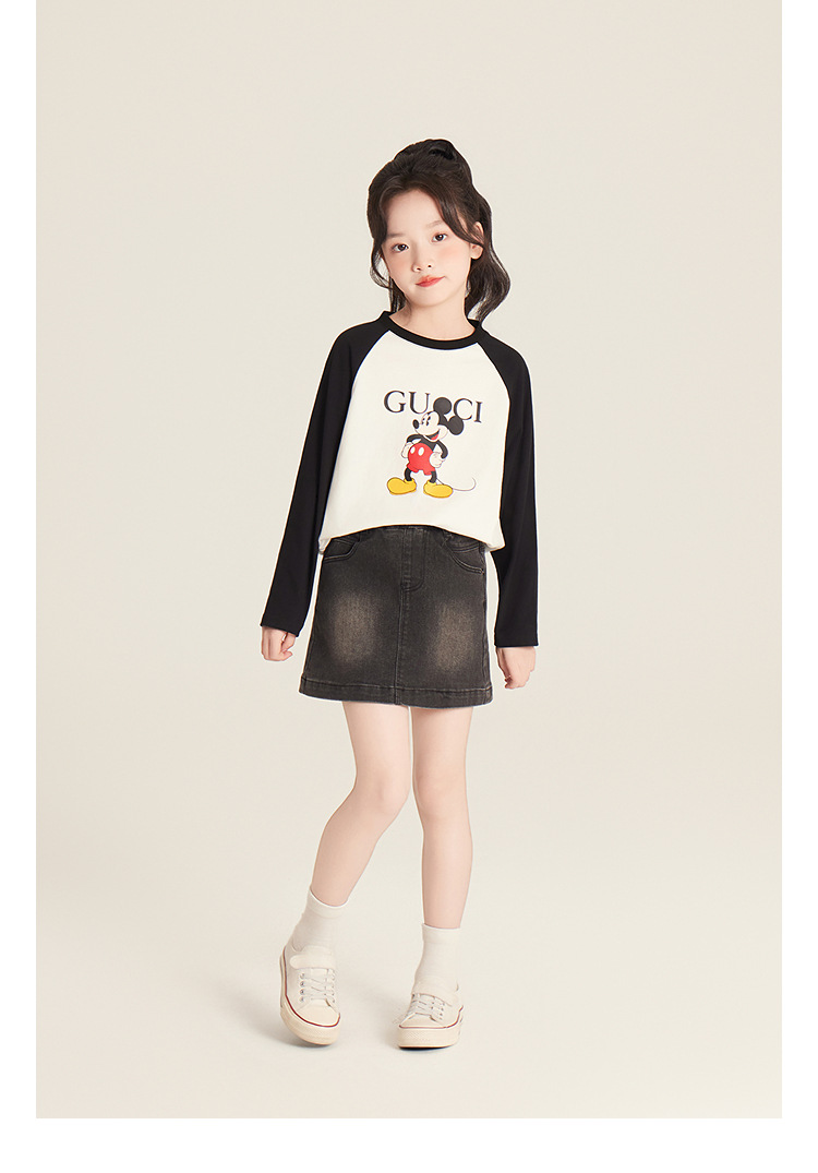 Amybaby Girls 'Top Spring 2025 새로운 어린이 서양 스타일 유행 캐주얼 슬림핏 명암 어깨 소매스토어 가기
