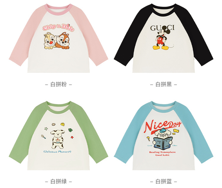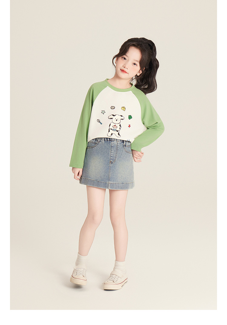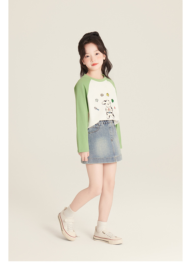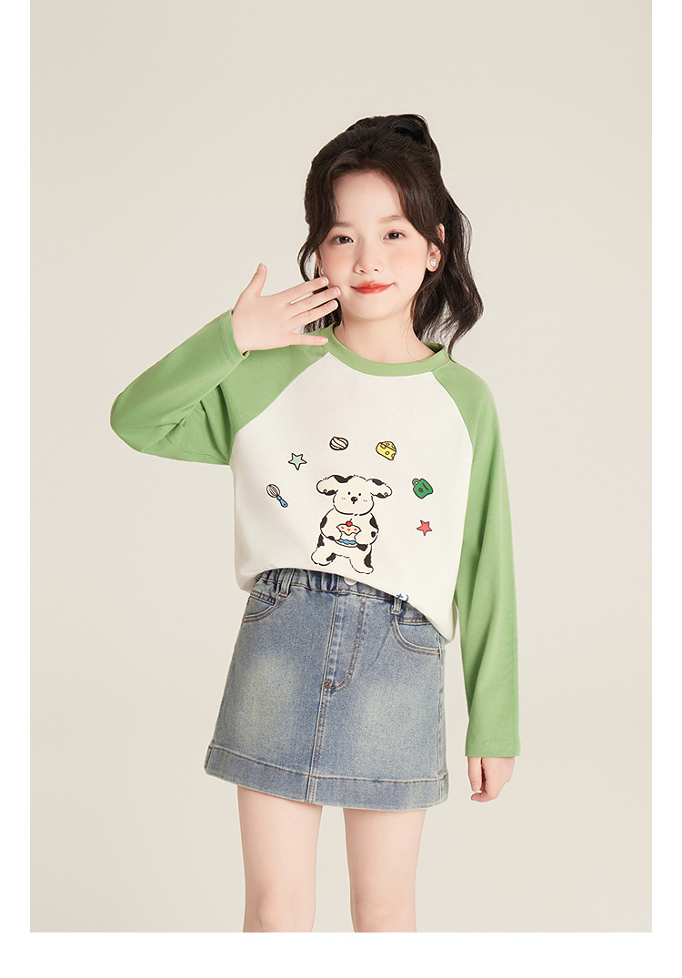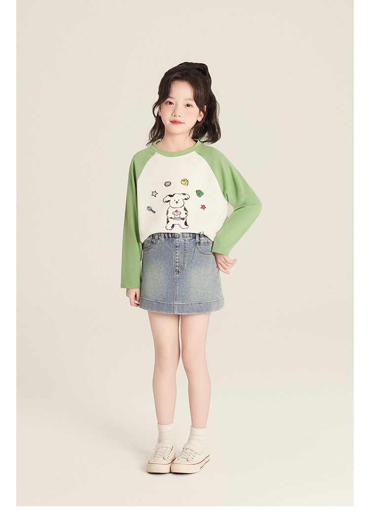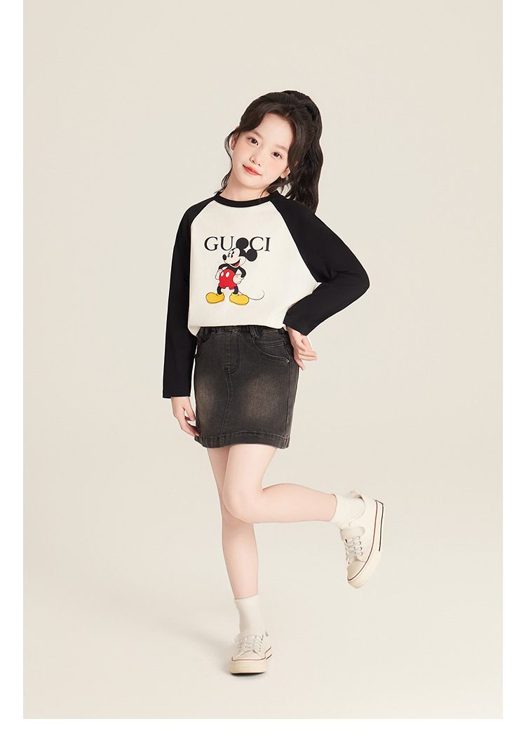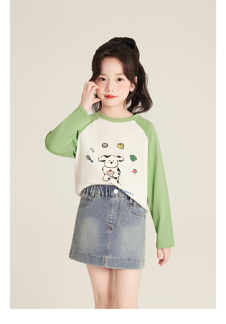 Amybaby Girls 'Top Spring 2025 새로운 어린이 서양 스타일 유행 캐주얼 슬림핏 명암 어깨 소매스토어 가기