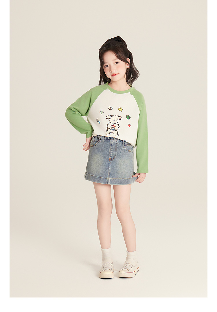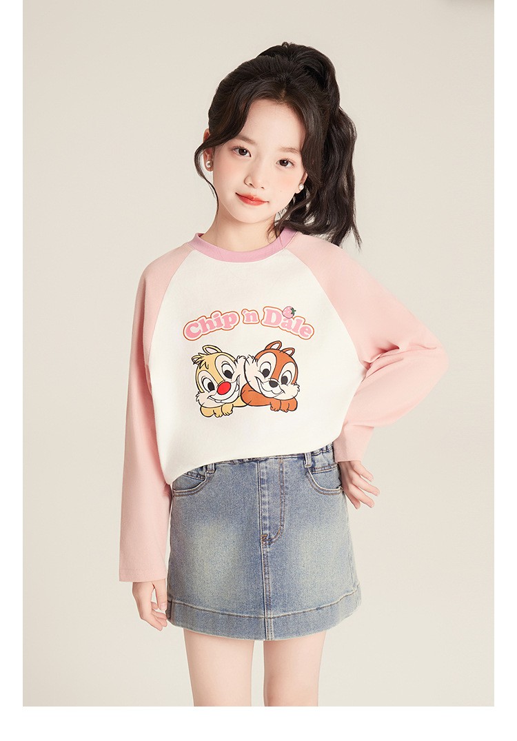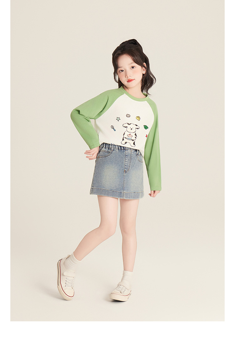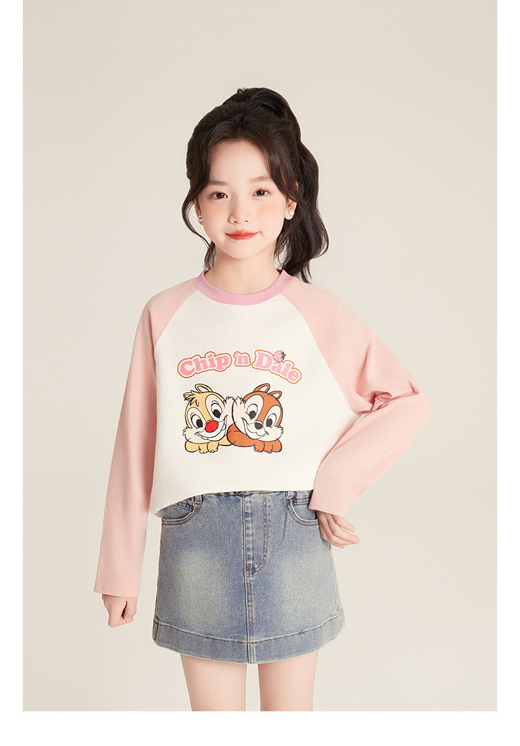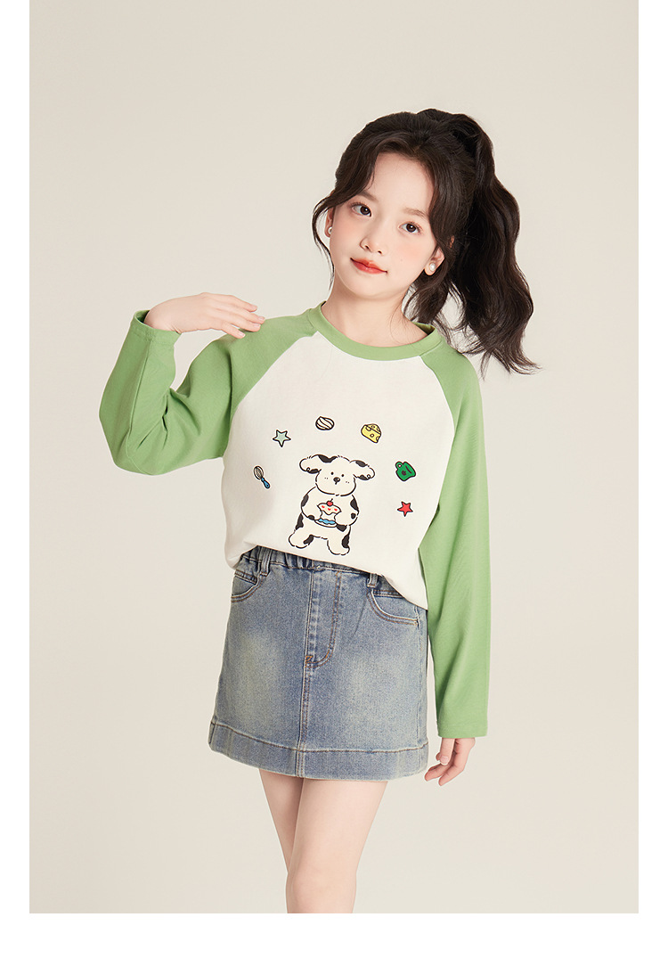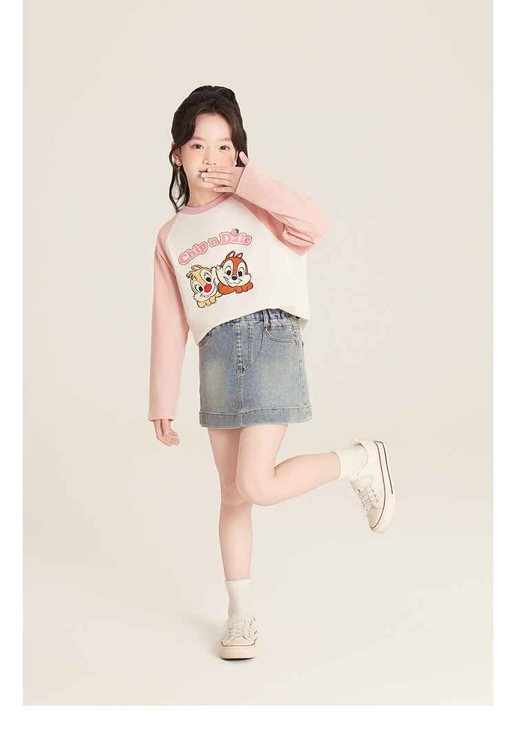 Amybaby Girls 'Top Spring 2025 새로운 어린이 서양 스타일 유행 캐주얼 슬림핏 명암 어깨 소매스토어 가기