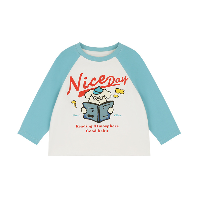 Amybaby Girls 'Top Spring 2025 새로운 어린이 서양 스타일 유행 캐주얼 슬림핏 명암 어깨 소매