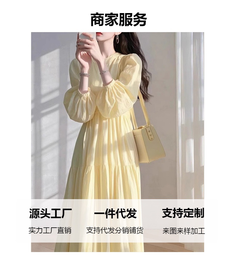 슈퍼 잘 생긴 노란색 느슨한 셔츠 원피스 여성의 2025 년 이른 봄 새로운 프랑스 휴일 스타일 요정 우아한 긴 원피스스토어 가기