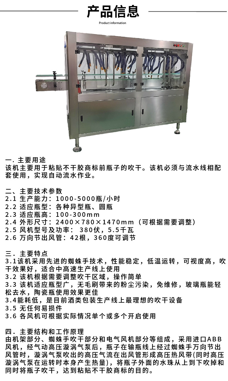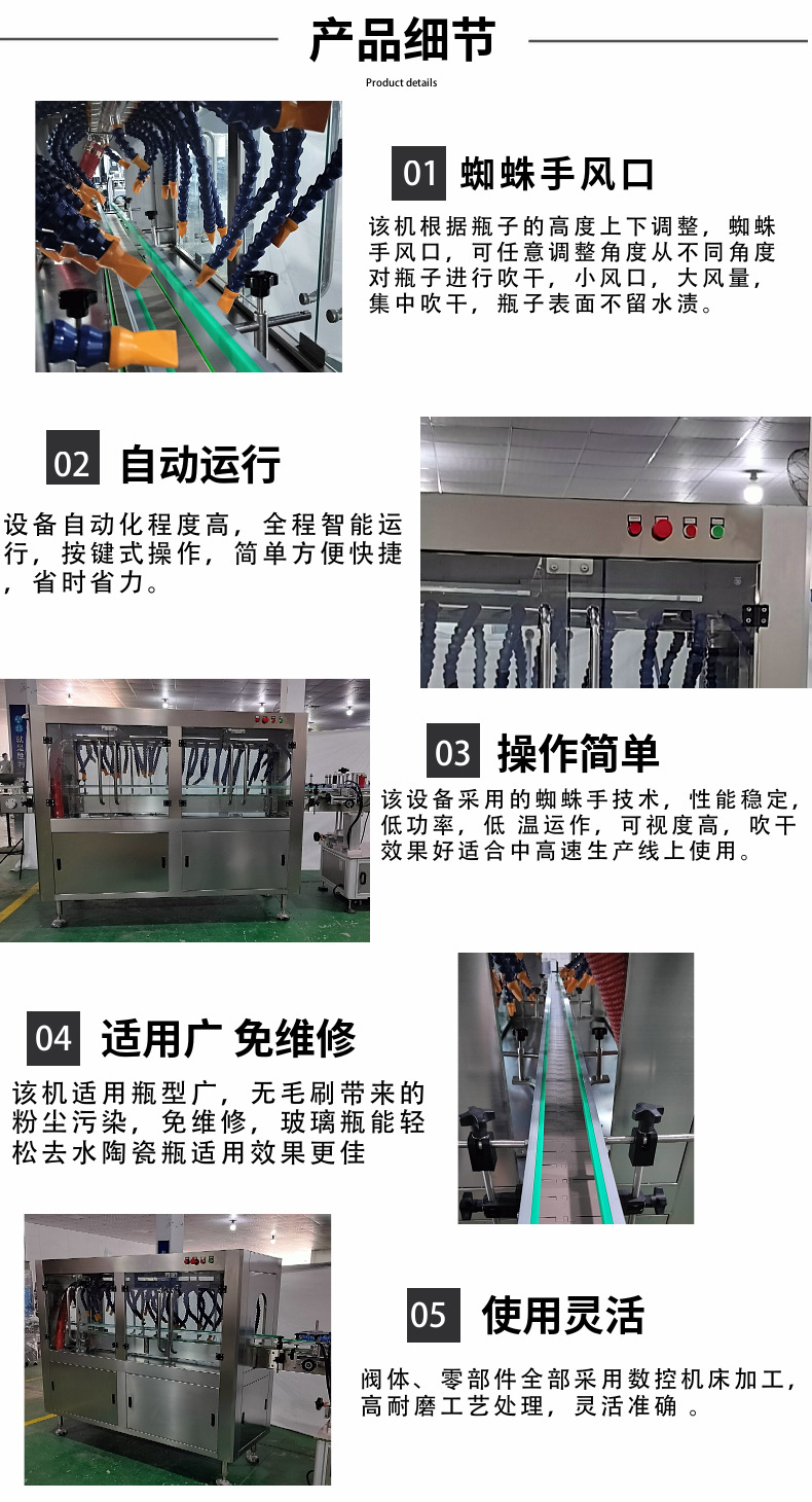 주문을 받아서 만들어진 완전 자동 거미 손 건조기 주류 음료 식품 유리병 둥근 병 직선형 터널 송풍기 건조기스토어 가기