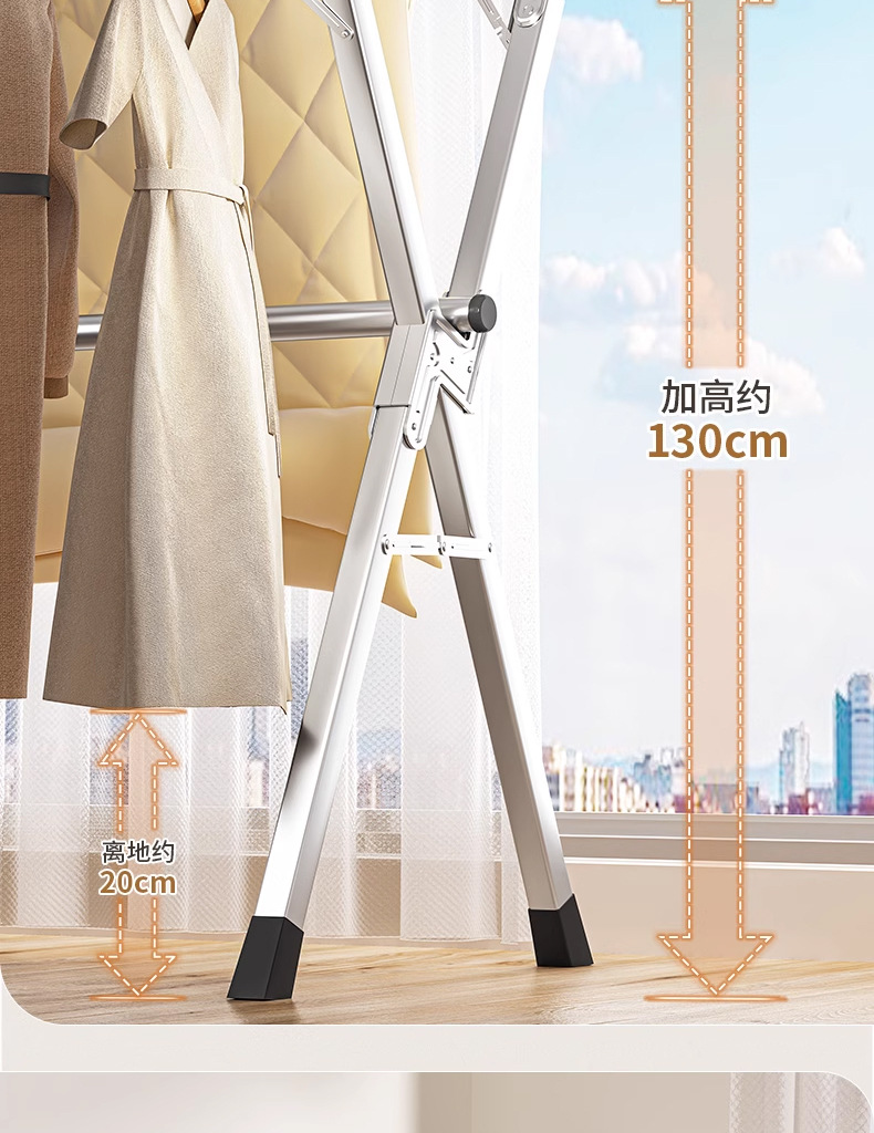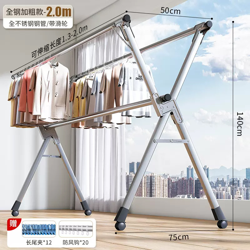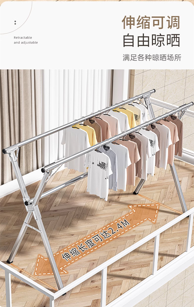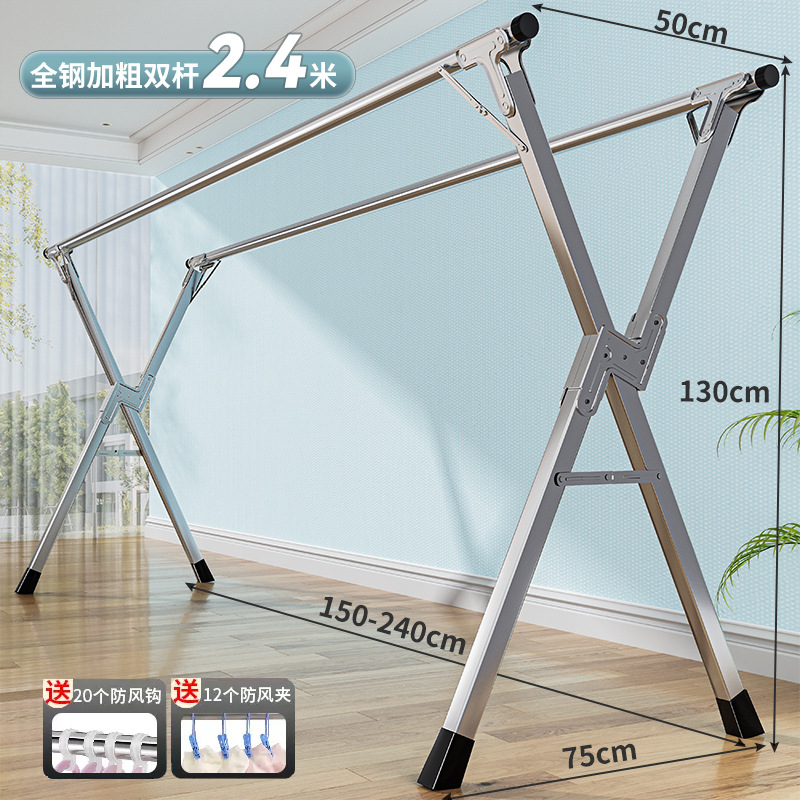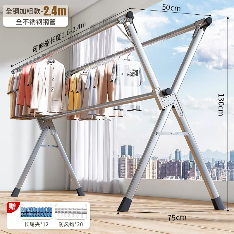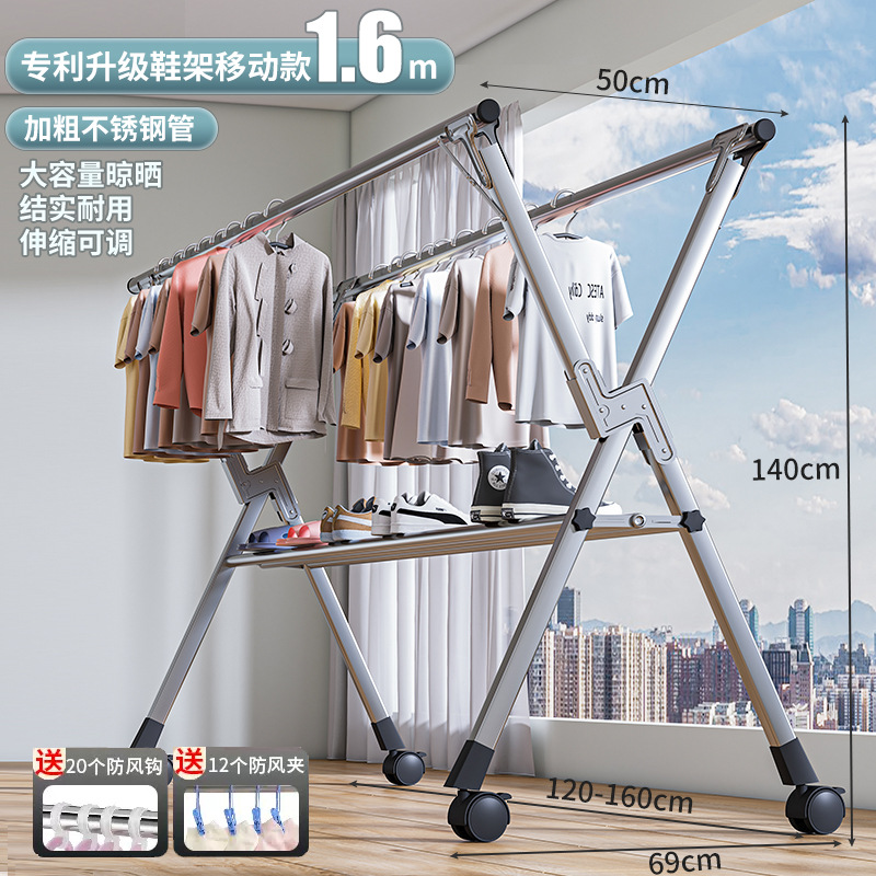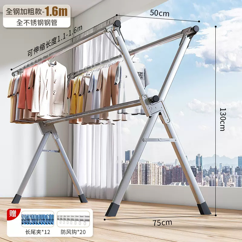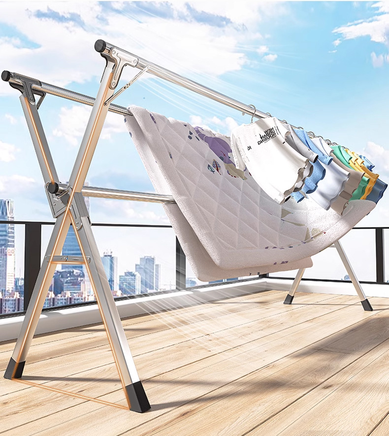 스테인레스 스틸 접이식 옷 랙 바닥 실내 및 실외 발코니 침실 옷 랙 가정용 옷 막대 건조 퀼트 유물