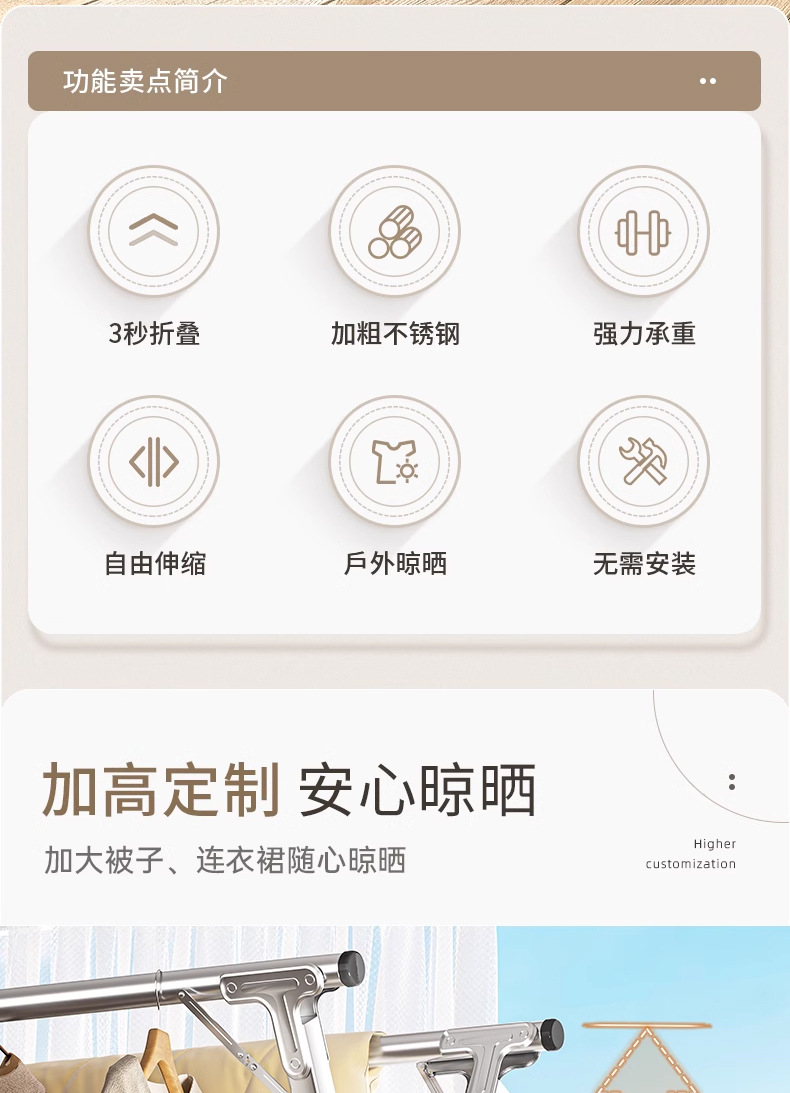 • 단극 1.2m - 접이식 - 후크 10개 포함, 기타 할인에 참여하지 않음✦✦