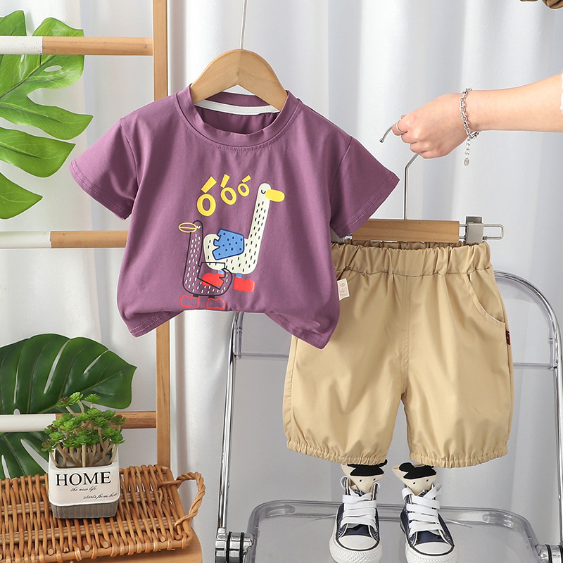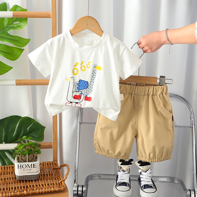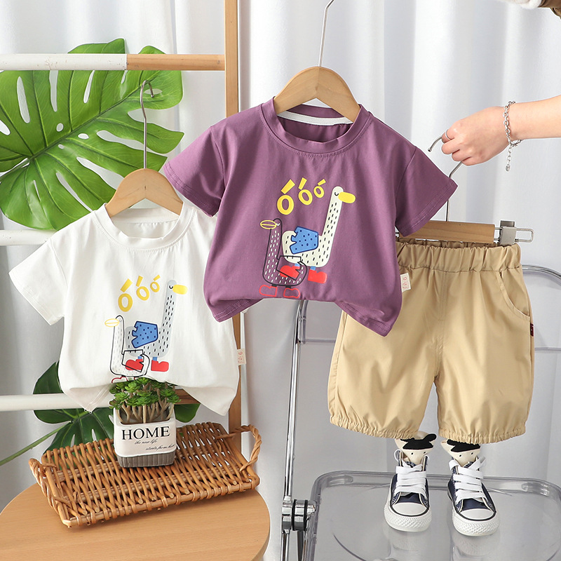 2025 년 새 여름 소년 한국 아동복 만화 반팔 투피스 여름 원피스 어린이 세트 헤어