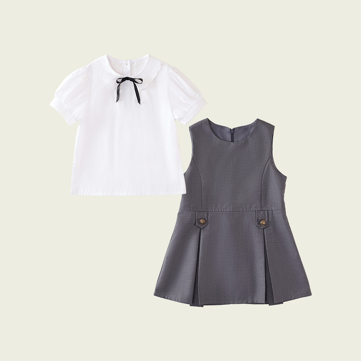 여자 대학 세트 2025 여름 새 민소매 빈 스커트 한국 셔츠 투피스 세트