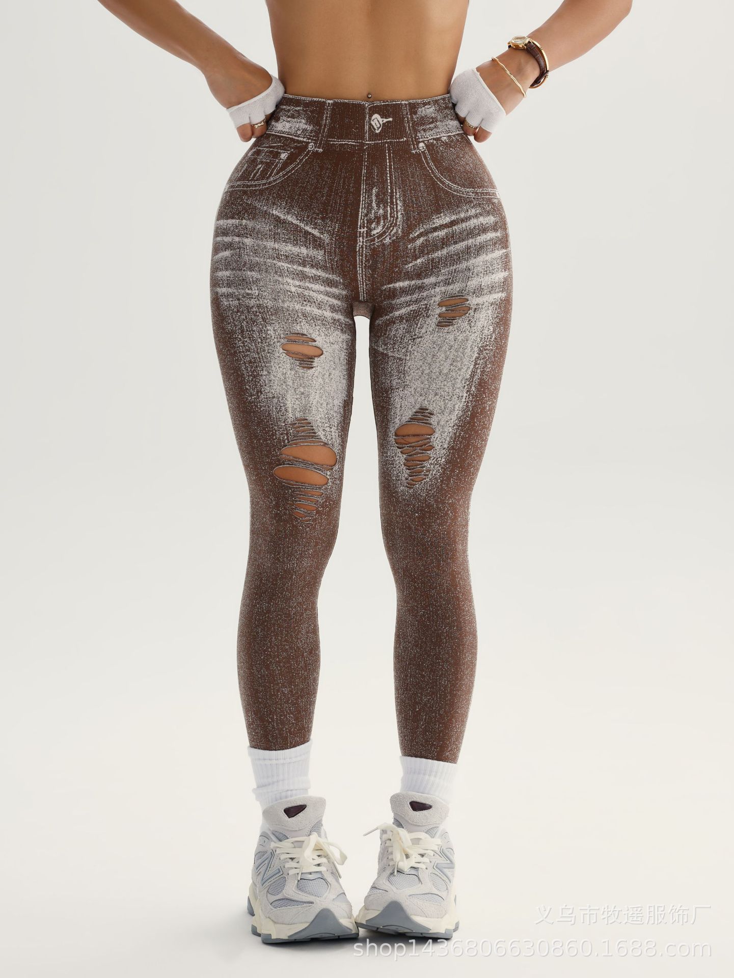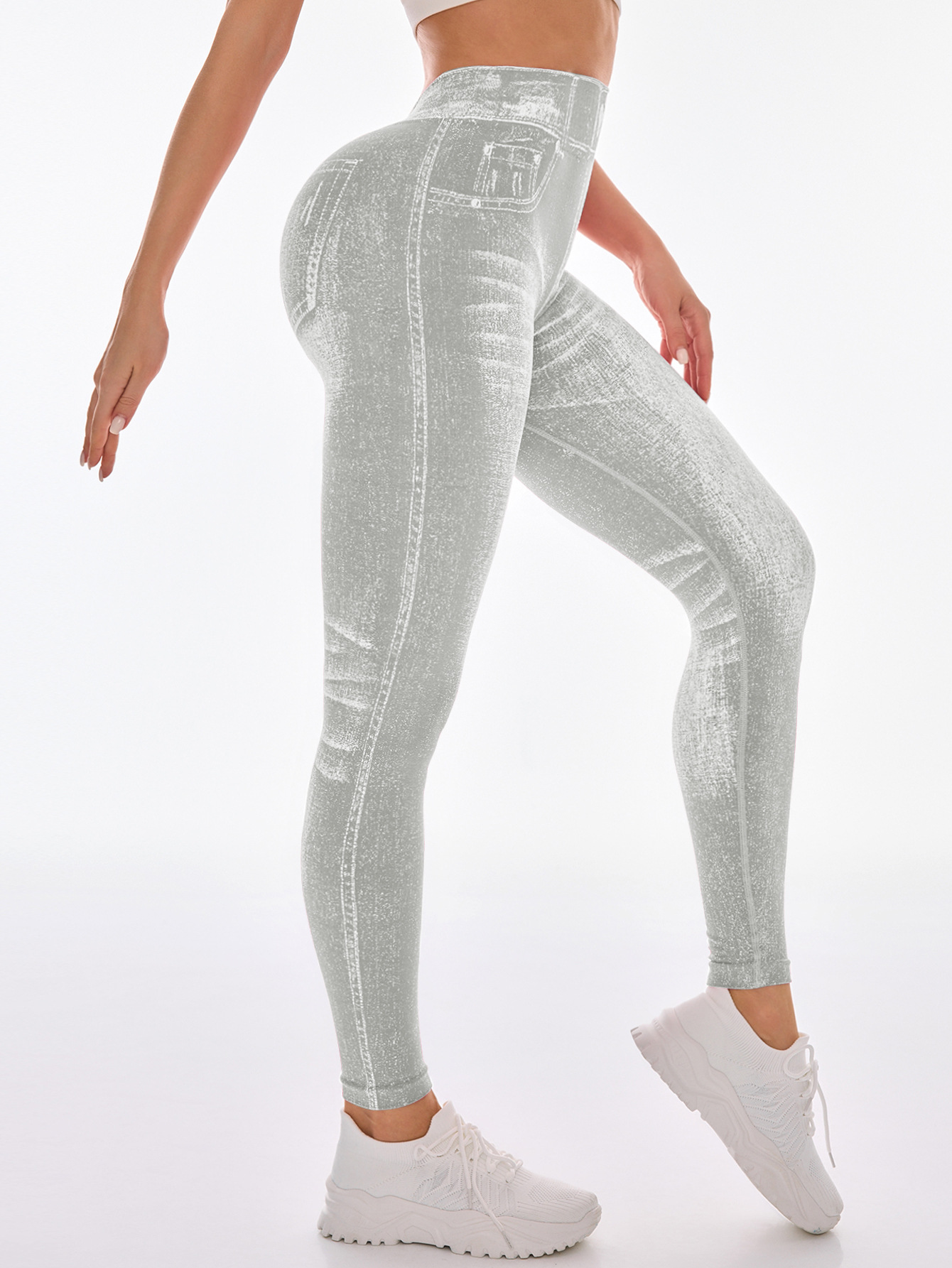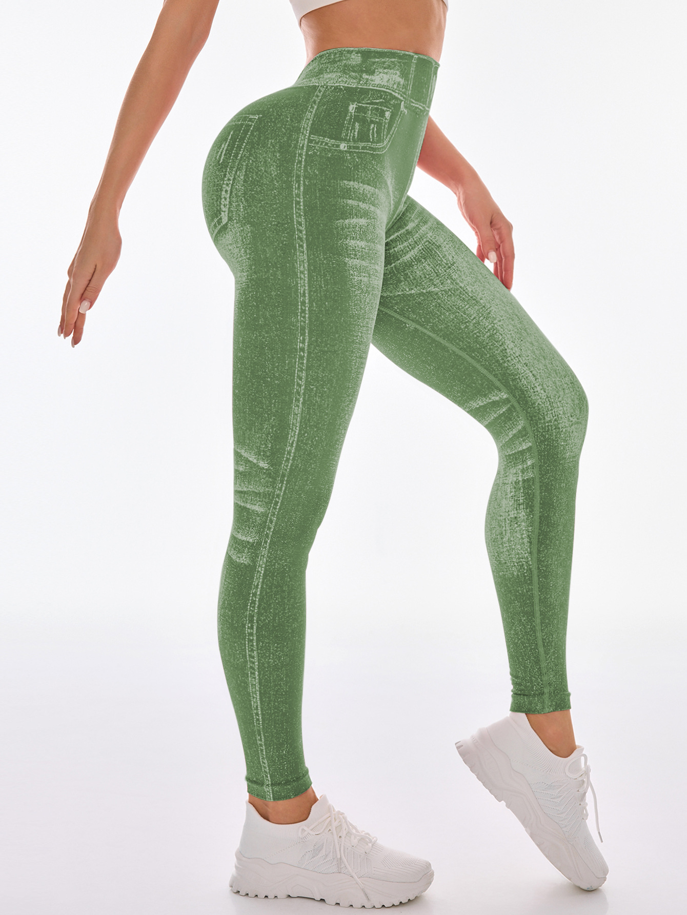 국경 간 폭발 모방 데님 원활한 요가 바지 여성용 후면 V 허리 엉덩이 빠른 건조 꽉 달리기 스포츠 피트니스 바지스토어 가기