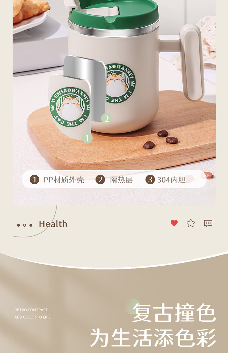 핸드 헬드 컵 304 차 분리 스테인레스 스틸 머그잔 커플의 뚜껑 커피 컵 티 컵 오피스 컵