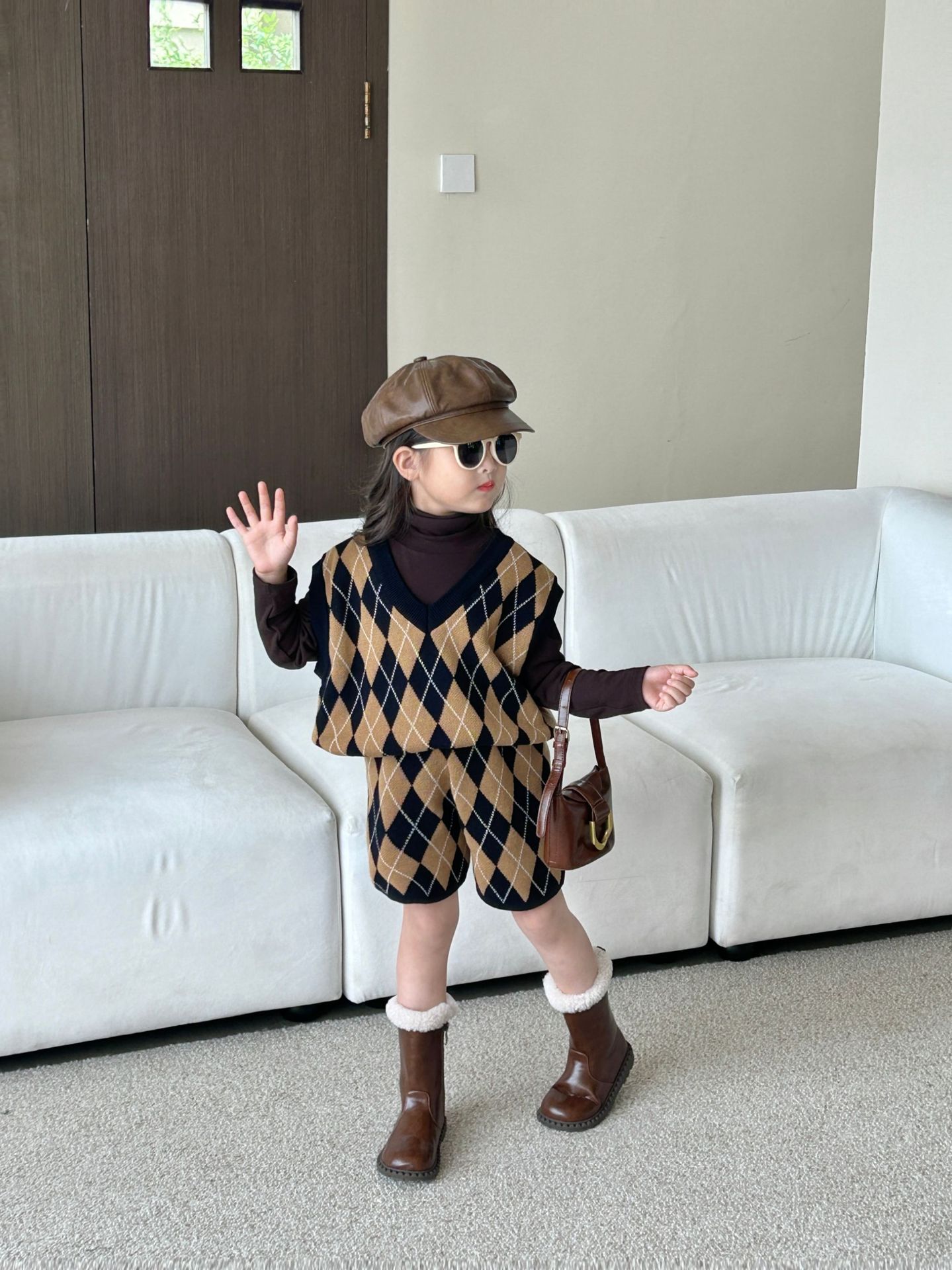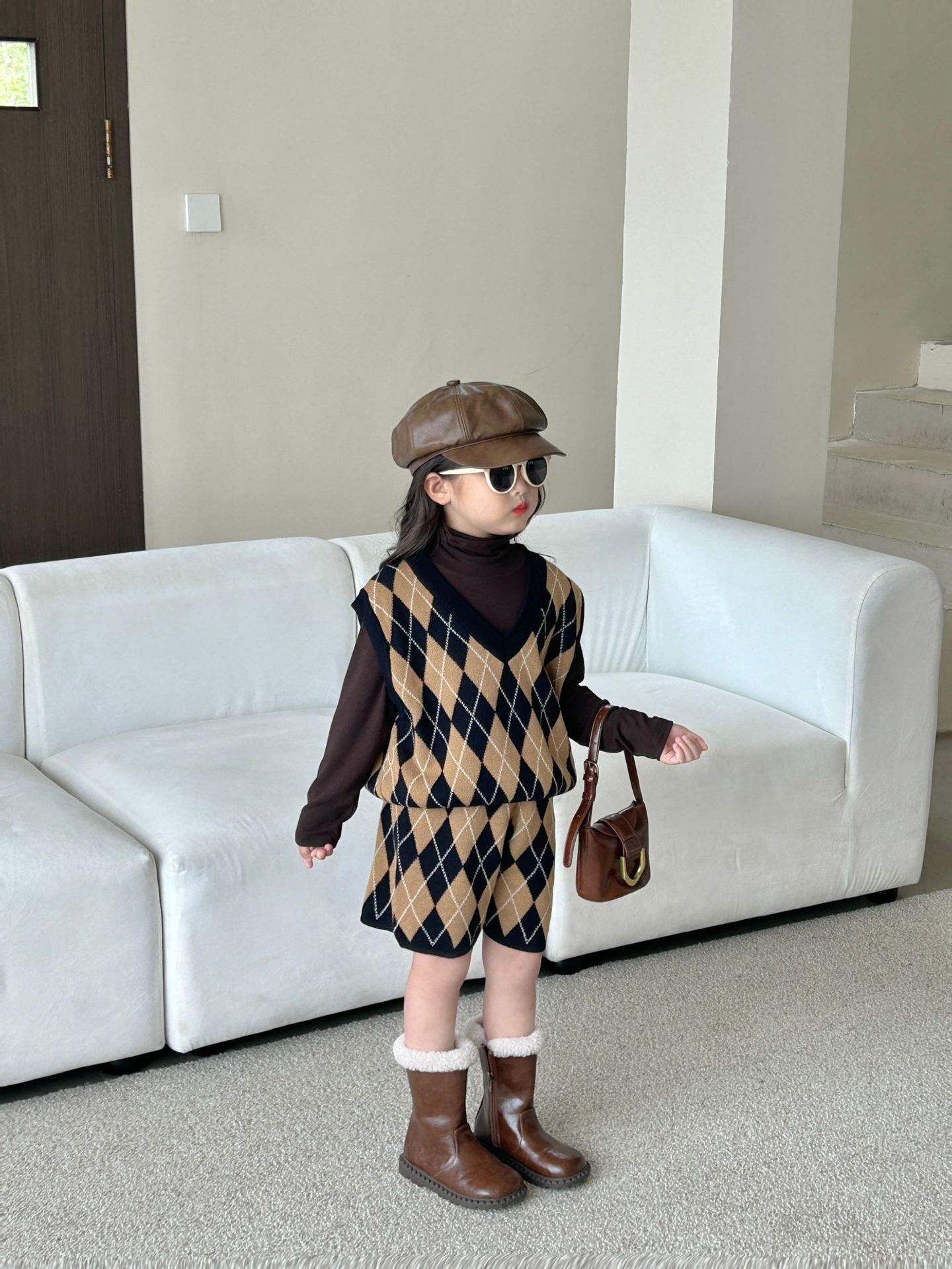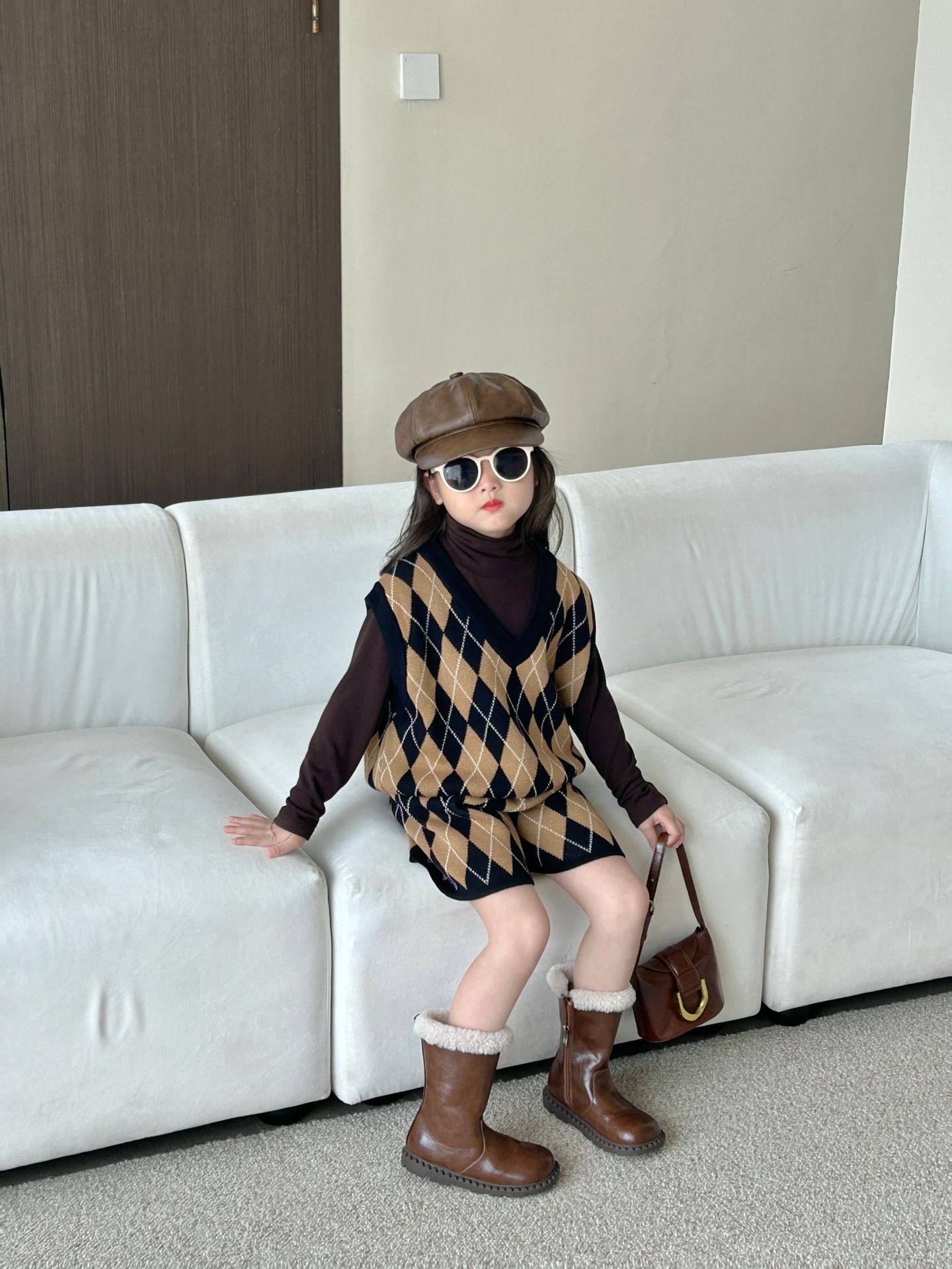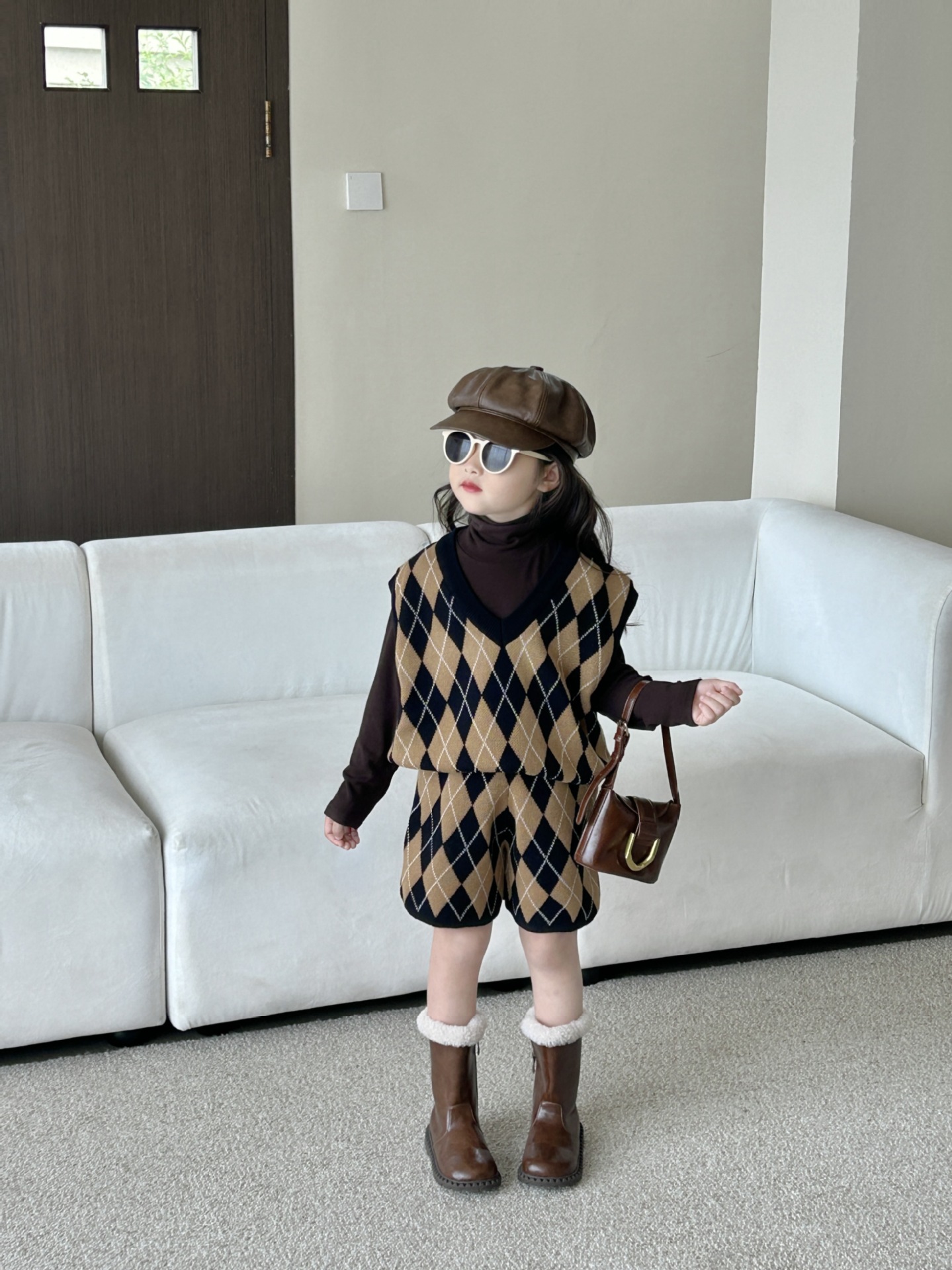 재고 소녀 봄과 가을 스웨터 세트 2025 한국 조끼 반바지 외국 스타일 아기 투피스 유행 바늘스토어 가기