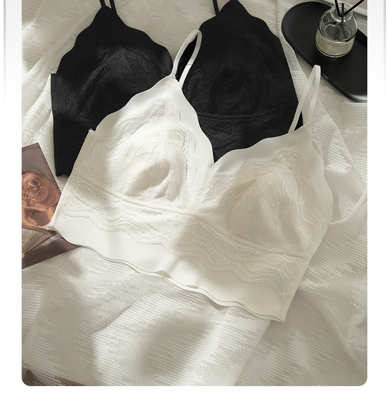 속옷 여성의 얇은 레이스 토끼 귀 컵 아름다운 등 작은 가슴 스틸 링 브라 아이스 실크 추적없는 섹시한 순수한 욕망 브라