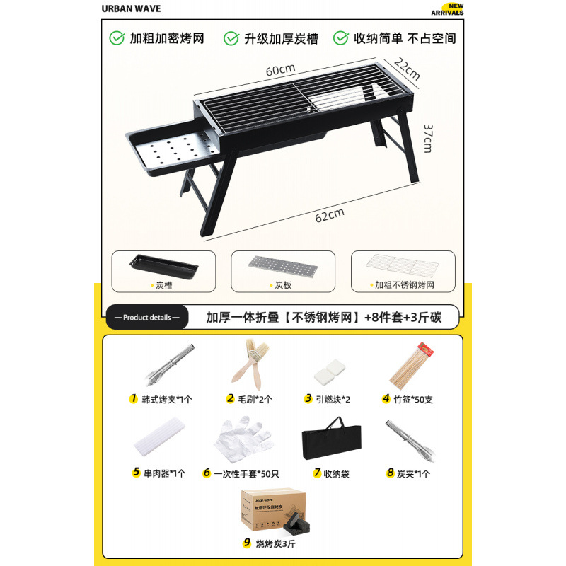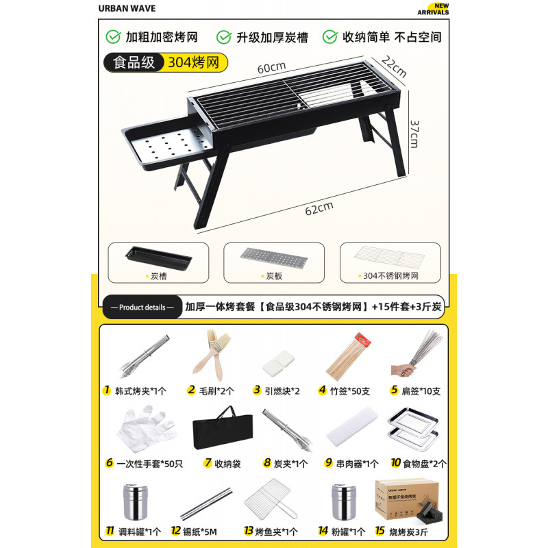 • 두꺼운 날개 접이식 스토브 [두꺼운 304 스테인레스 그릴망] 12종 세트 + 숯 1.5kg개 포함✦✦