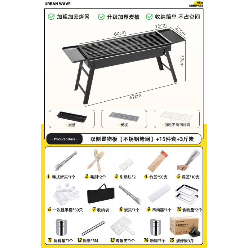 • 두꺼운 날개 접이식 스토브 [두꺼운 304 스테인레스 그릴망] 15개 세트 + 숯 1.5kg개 포함✦✦