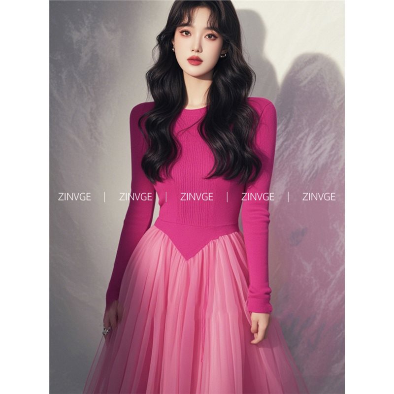 YT408347 느낌은 핑크 니트 스티칭 원피스 어린이 2025 새로운 이른 봄 스타일스토어 가기
