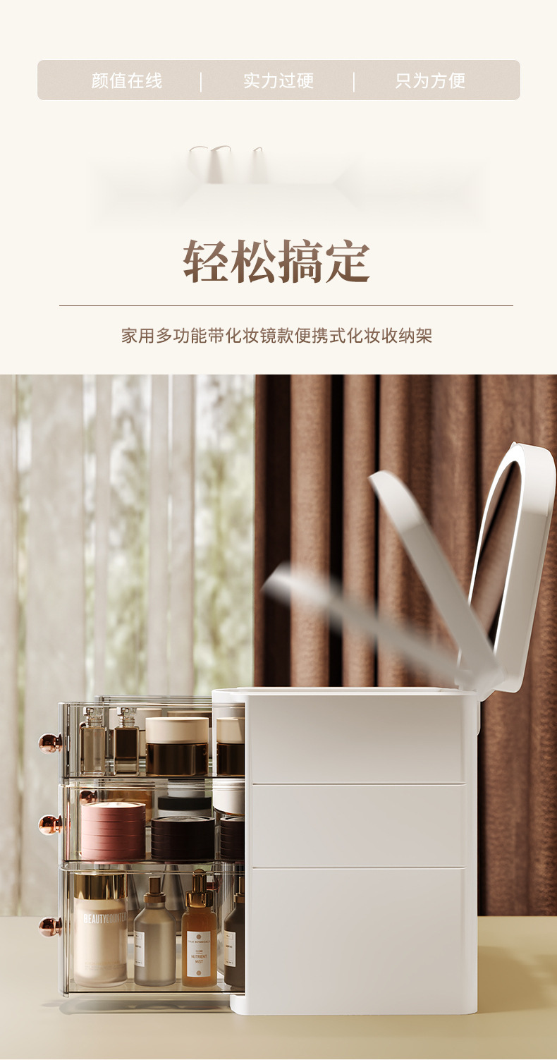 거울 통합 방진 데스크탑 가정용 상자 대용량 스킨 케어 드레싱 테이블 스토리지 랙 화장품 보관 상자스토어 가기