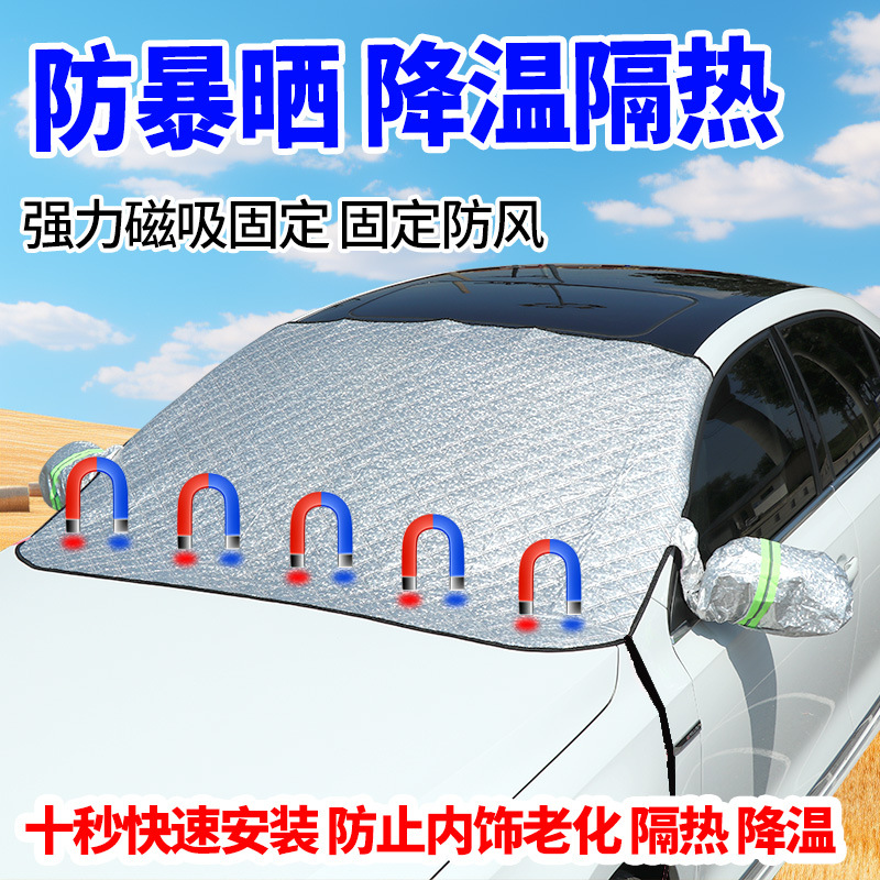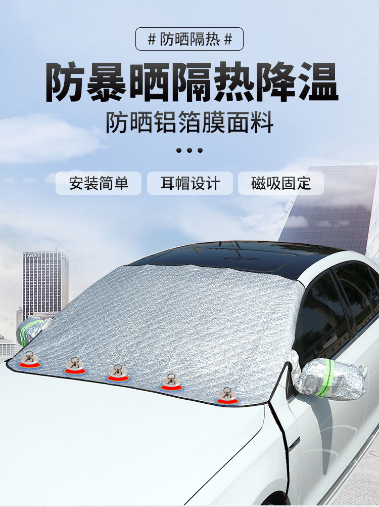 자동차 앞유리 햇빛 가리개 반커버 사계절 앞유리 단열 눈/서리 방지 커버 자석 고정