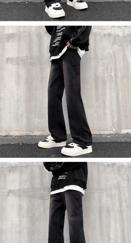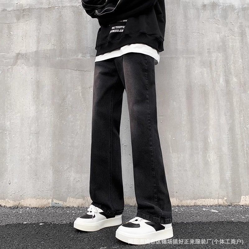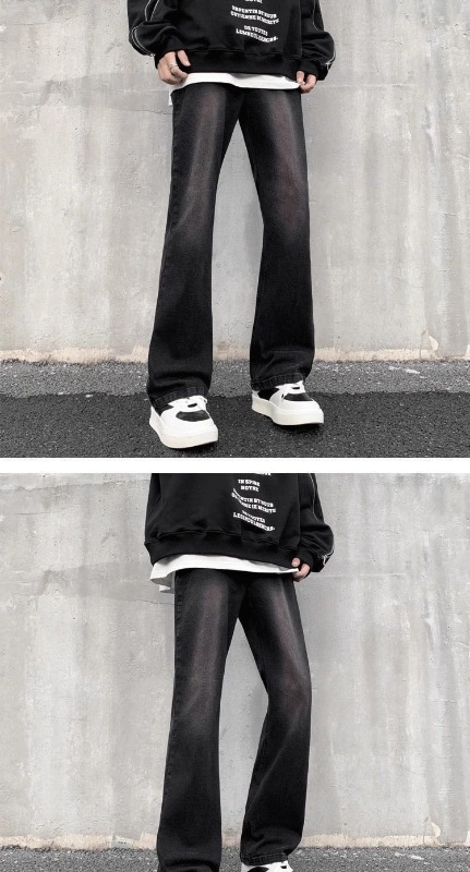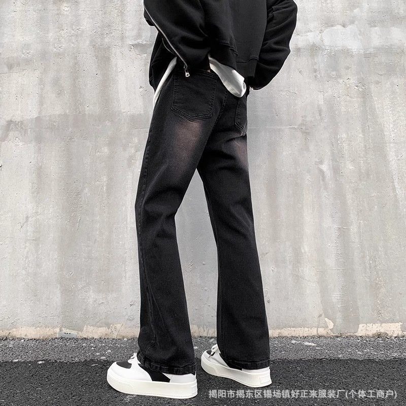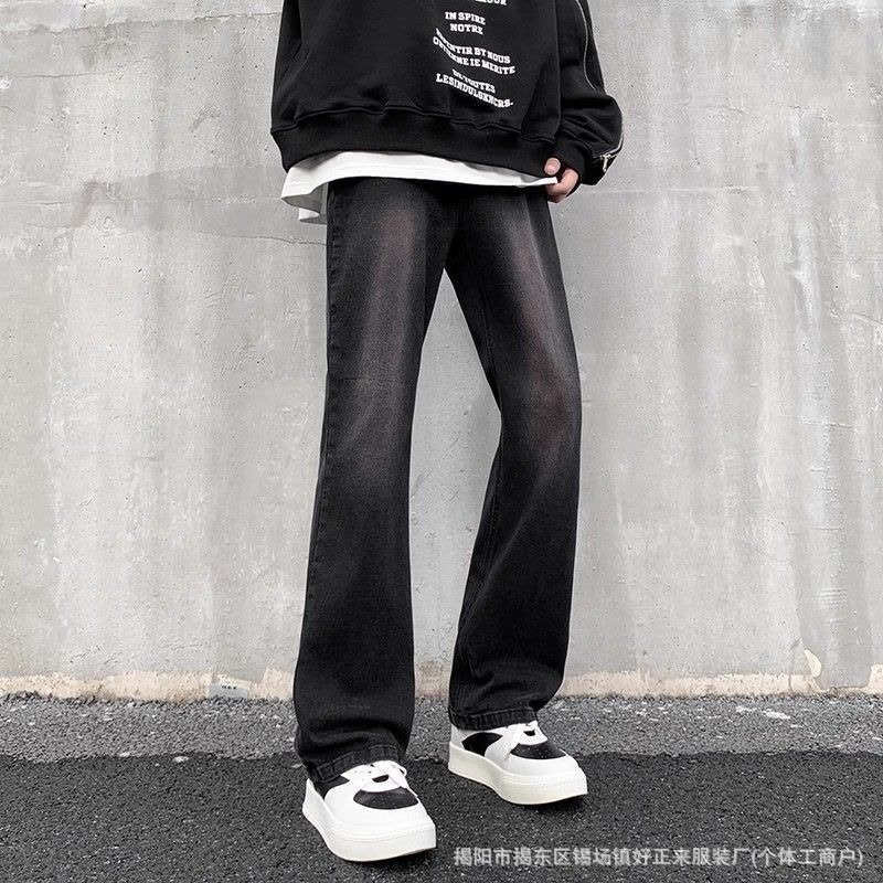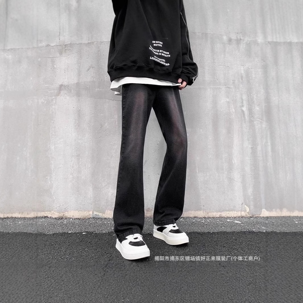 남성과 여성을위한 블랙 그라디언트 스키니 청바지 가을 미국 레트로 하이 스트리트 바이브 스트레이트 슬림 긴 바지스토어 가기