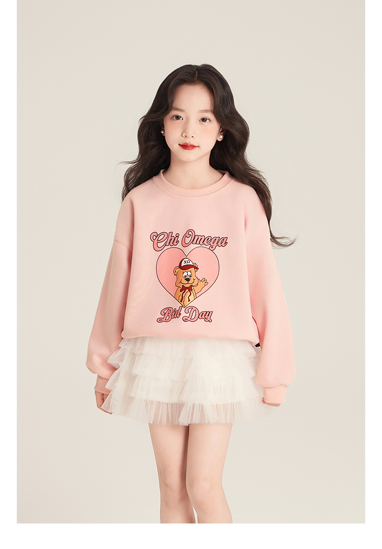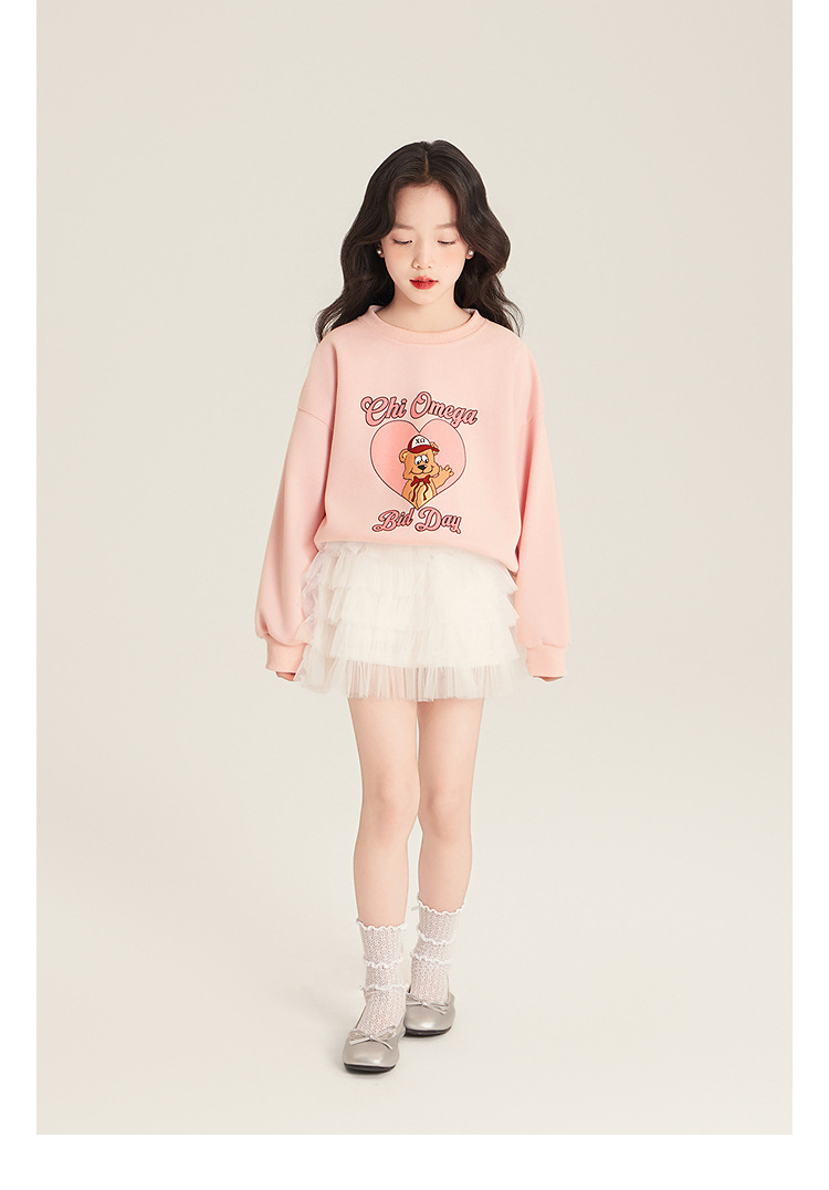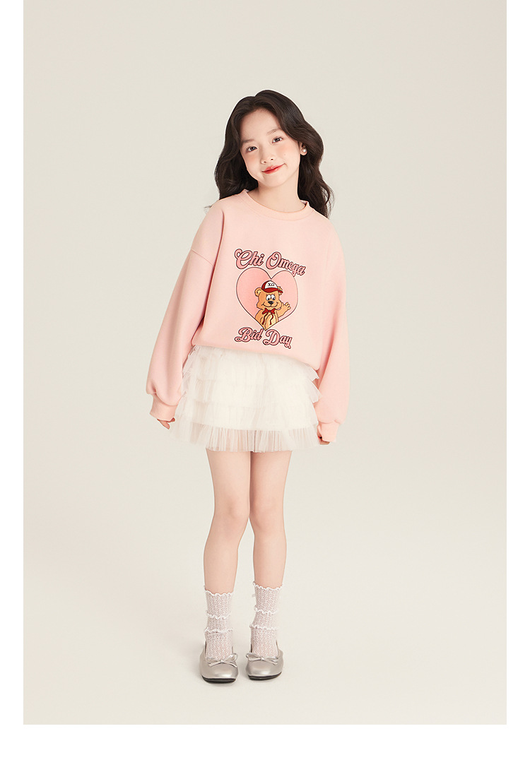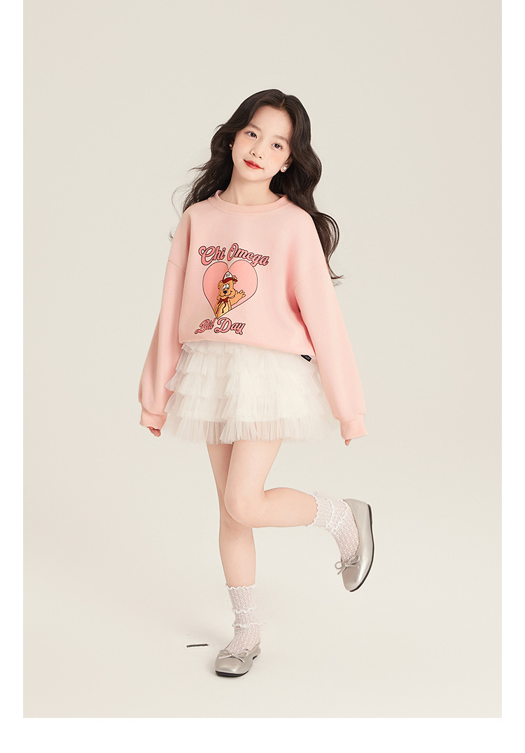 Amybaby Girls 'Top Spring 2025 새로운 한국 캐주얼 올 매치 만화 크루 넥 풀오버 루즈 스웨트 셔츠