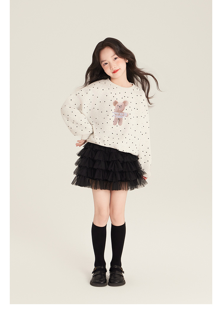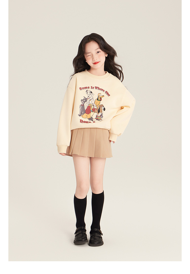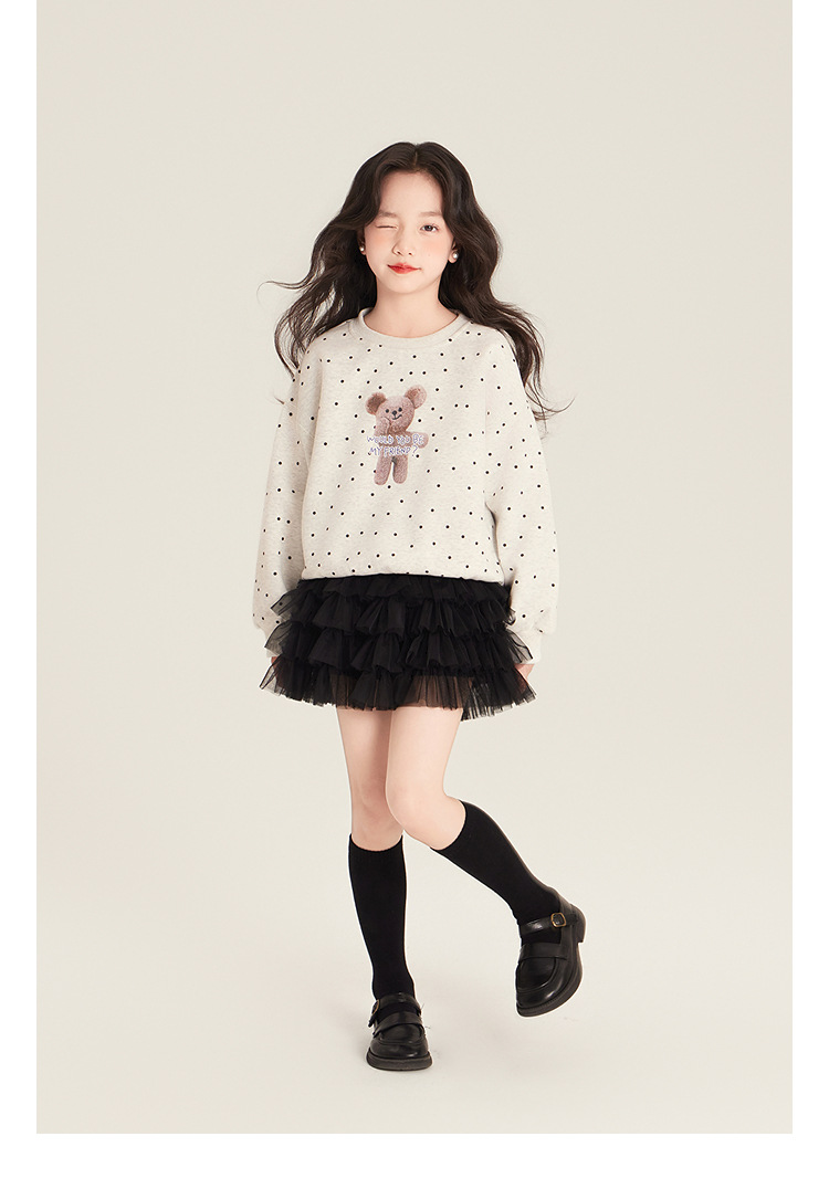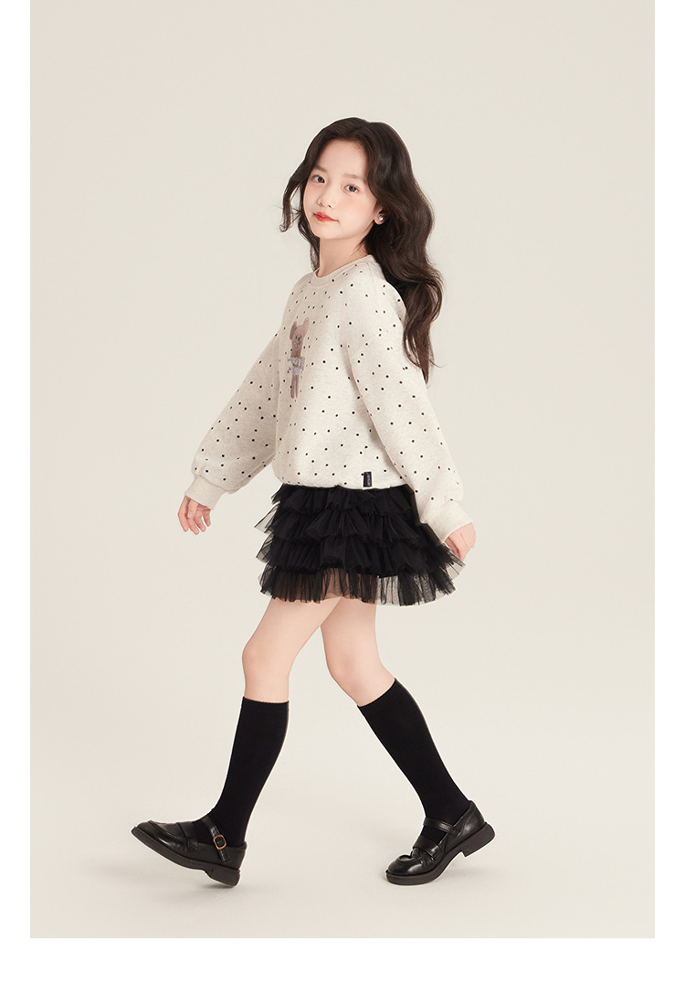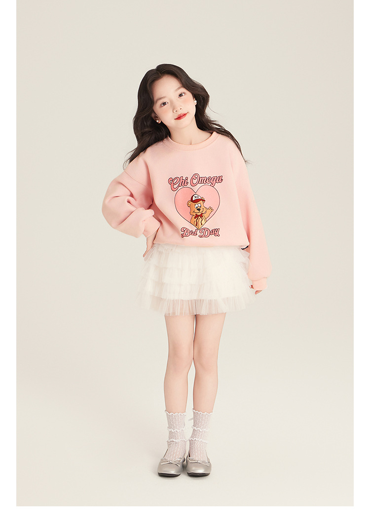 Amybaby Girls 'Top Spring 2025 새로운 한국 캐주얼 올 매치 만화 크루 넥 풀오버 루즈 스웨트 셔츠