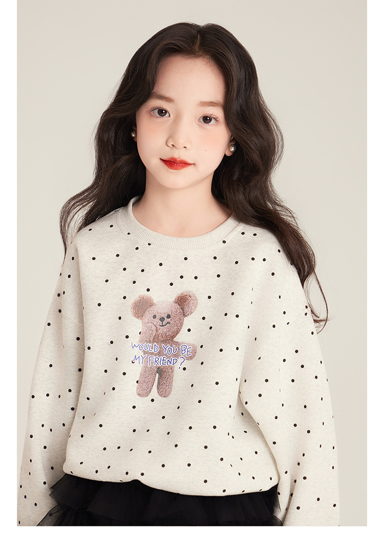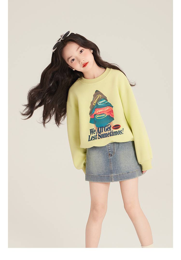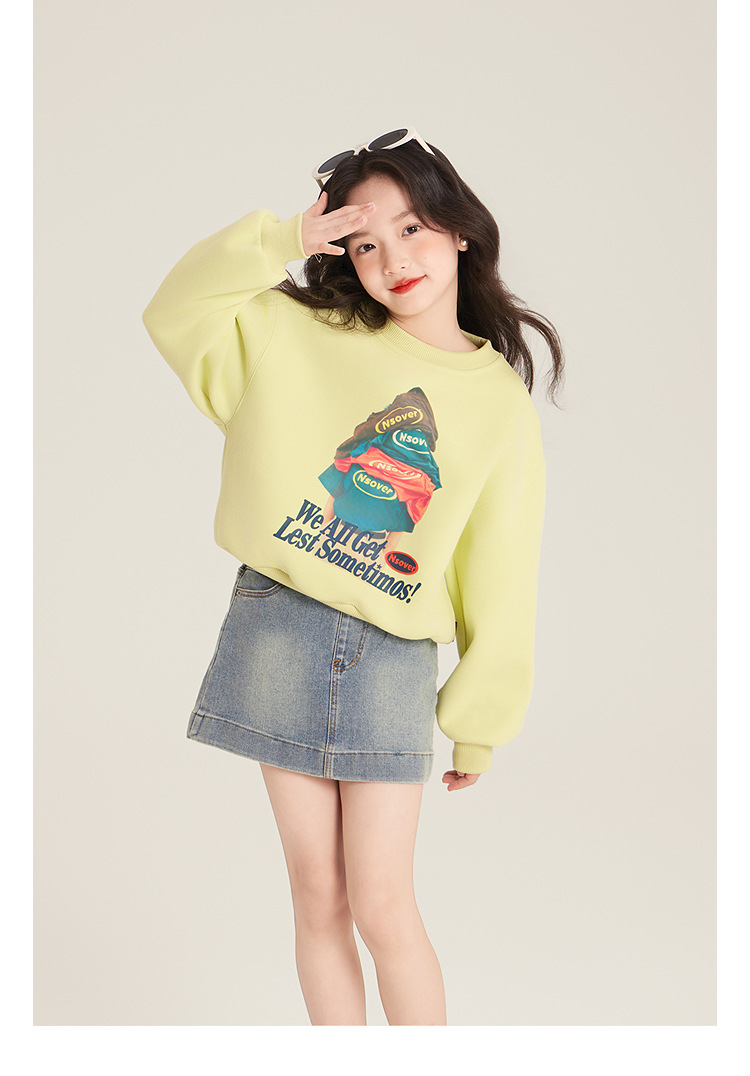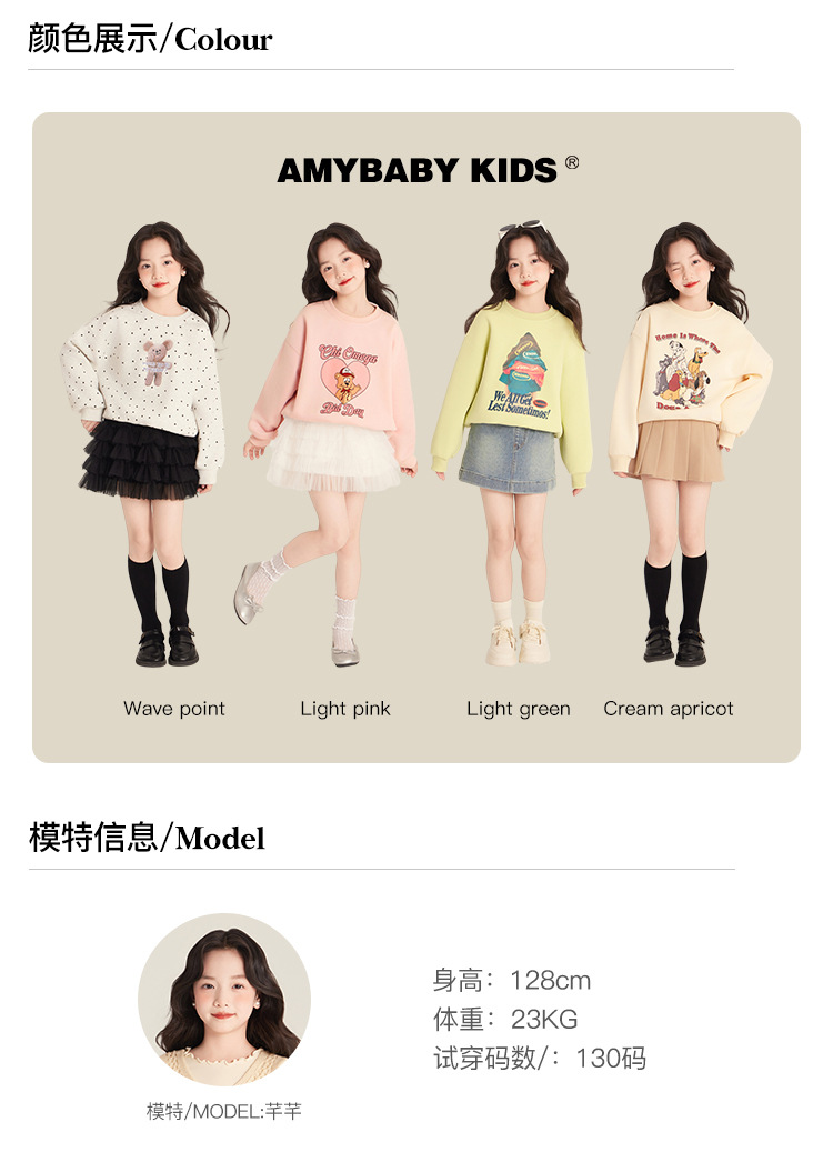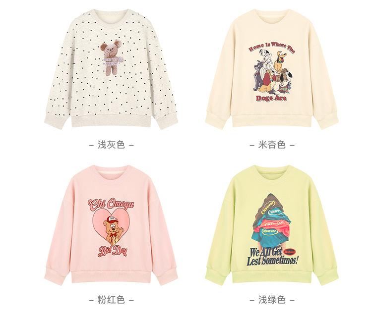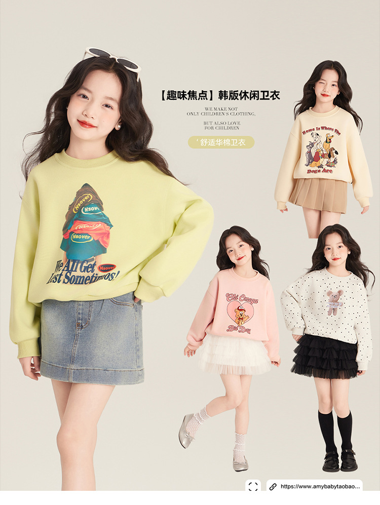 Amybaby Girls 'Top Spring 2025 새로운 한국 캐주얼 올 매치 만화 크루 넥 풀오버 루즈 스웨트 셔츠스토어 가기