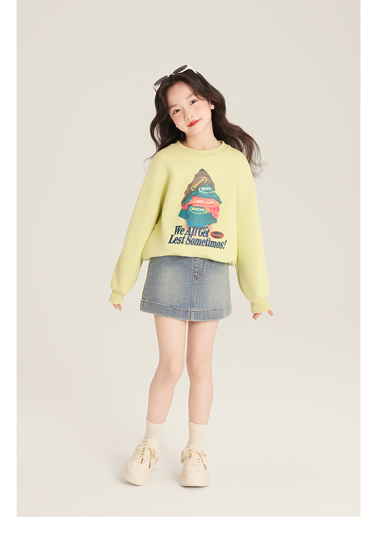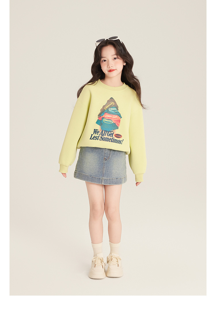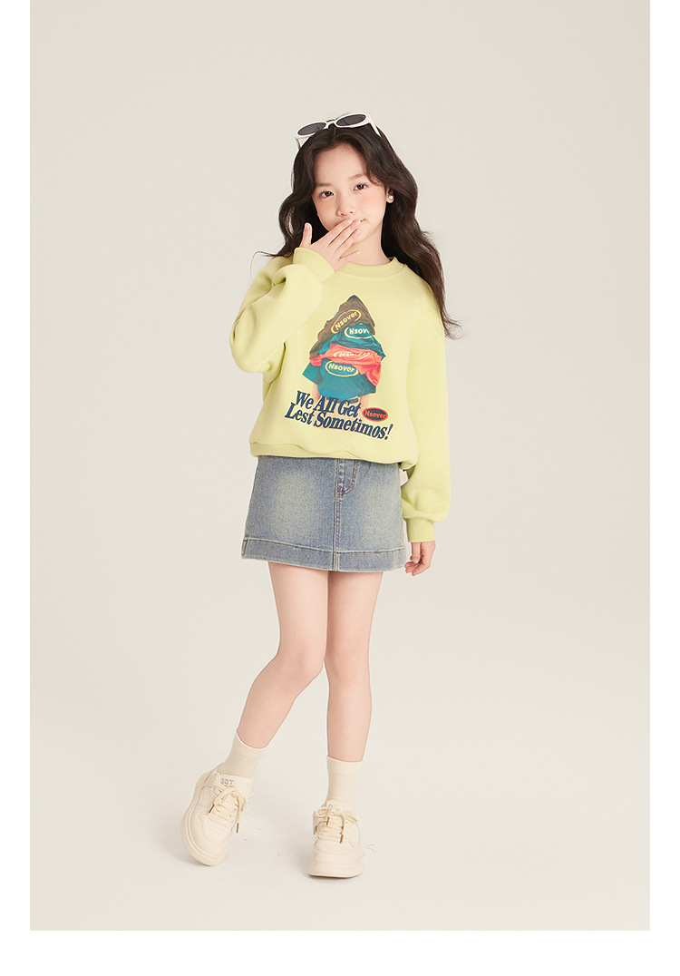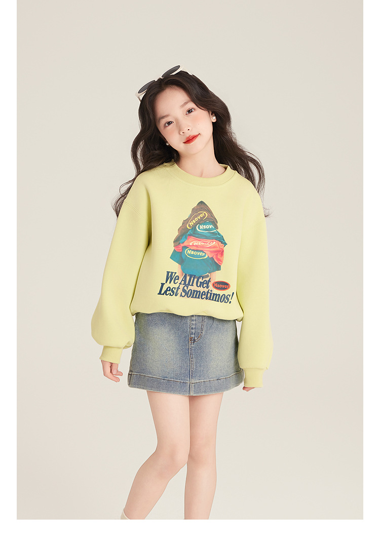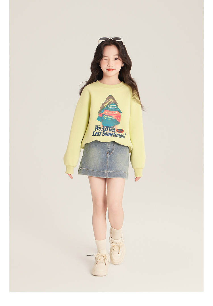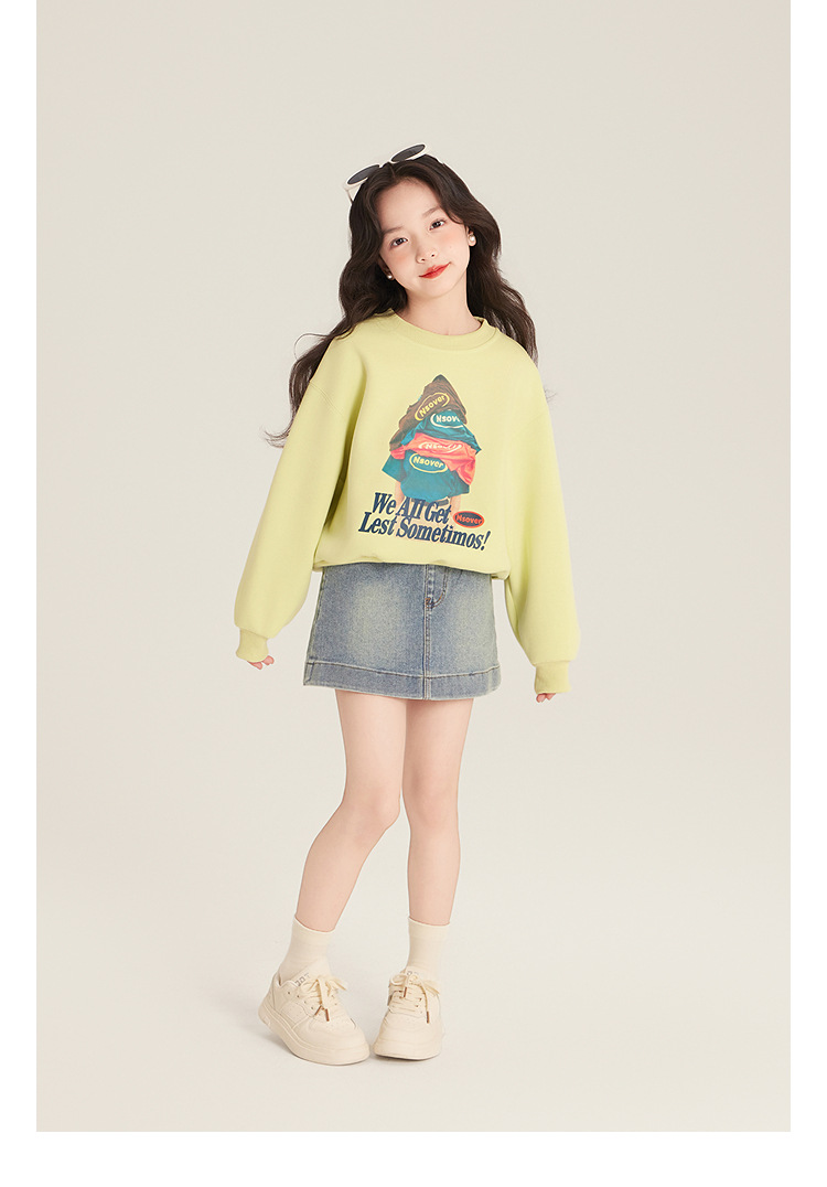 Amybaby Girls 'Top Spring 2025 새로운 한국 캐주얼 올 매치 만화 크루 넥 풀오버 루즈 스웨트 셔츠스토어 가기