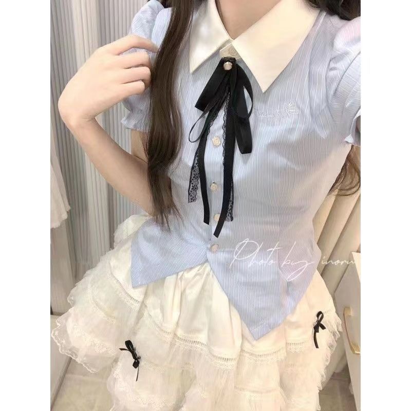 한국 스타일 달콤한 나이 감소 신선한 스타일 명암 컬러 폴로 칼라 셔츠 높은 허리 디자인 센스 투투 원피스 원피스 여름 여성스토어 가기