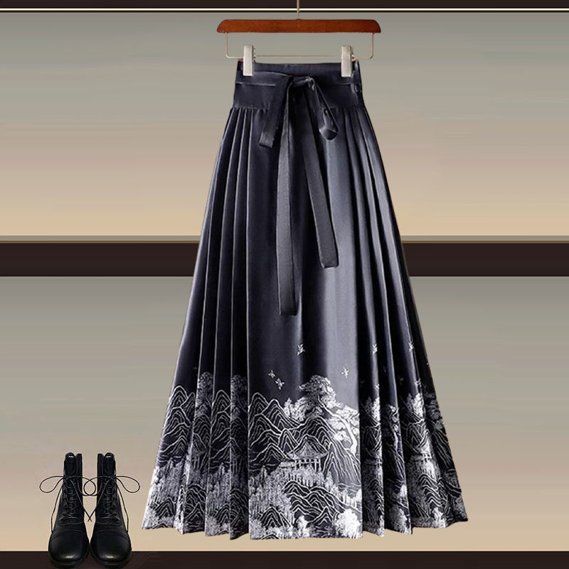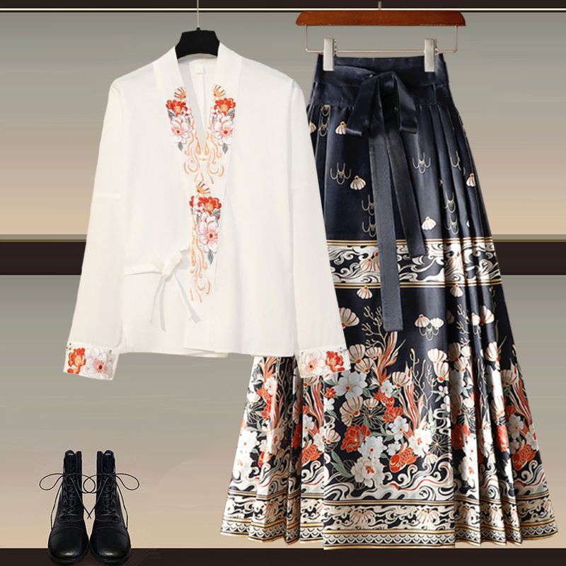 새로운 중국 스타일 국가 스타일 세트 세트 여성의 2025 새로운 한푸 탑 여성의 우아한 빨간 말 얼굴 스커트 투피스 세트스토어 가기