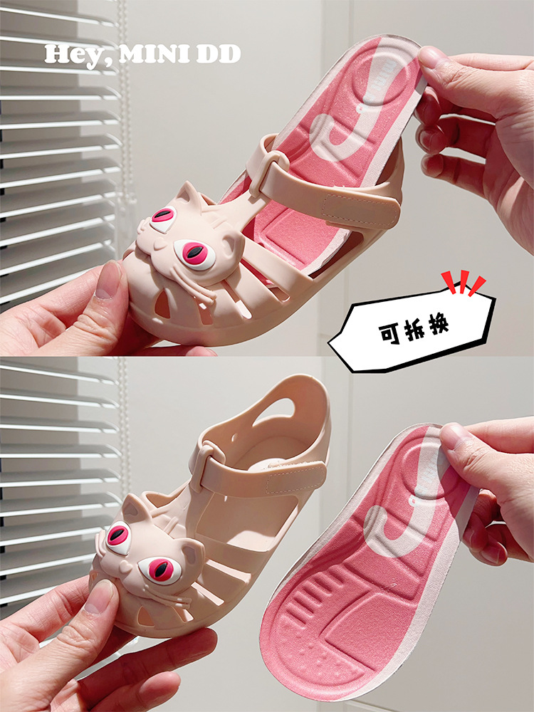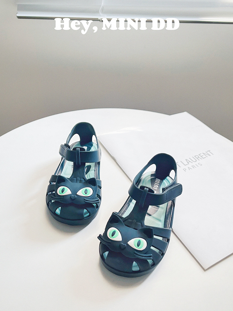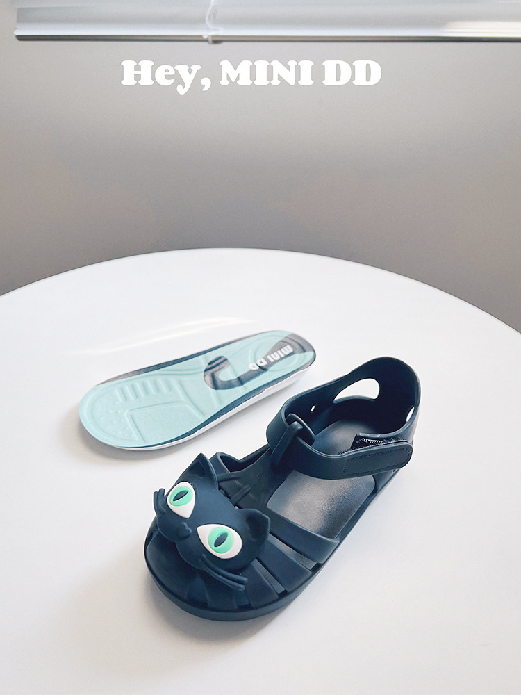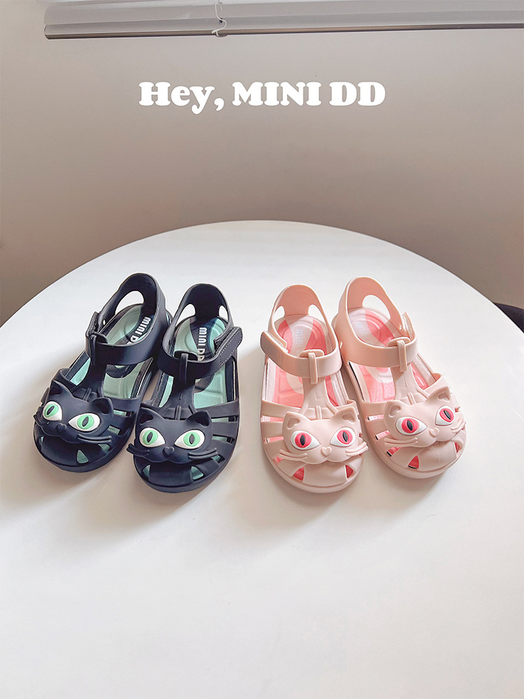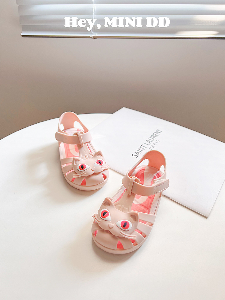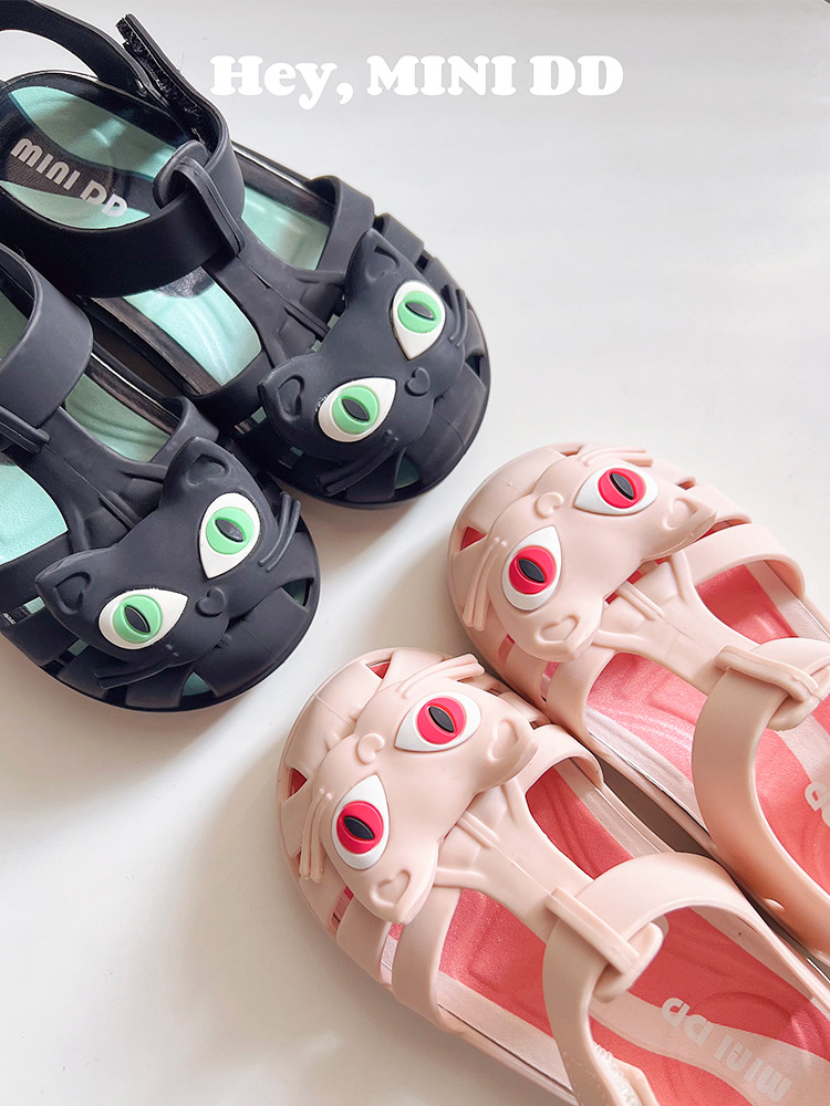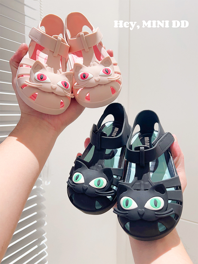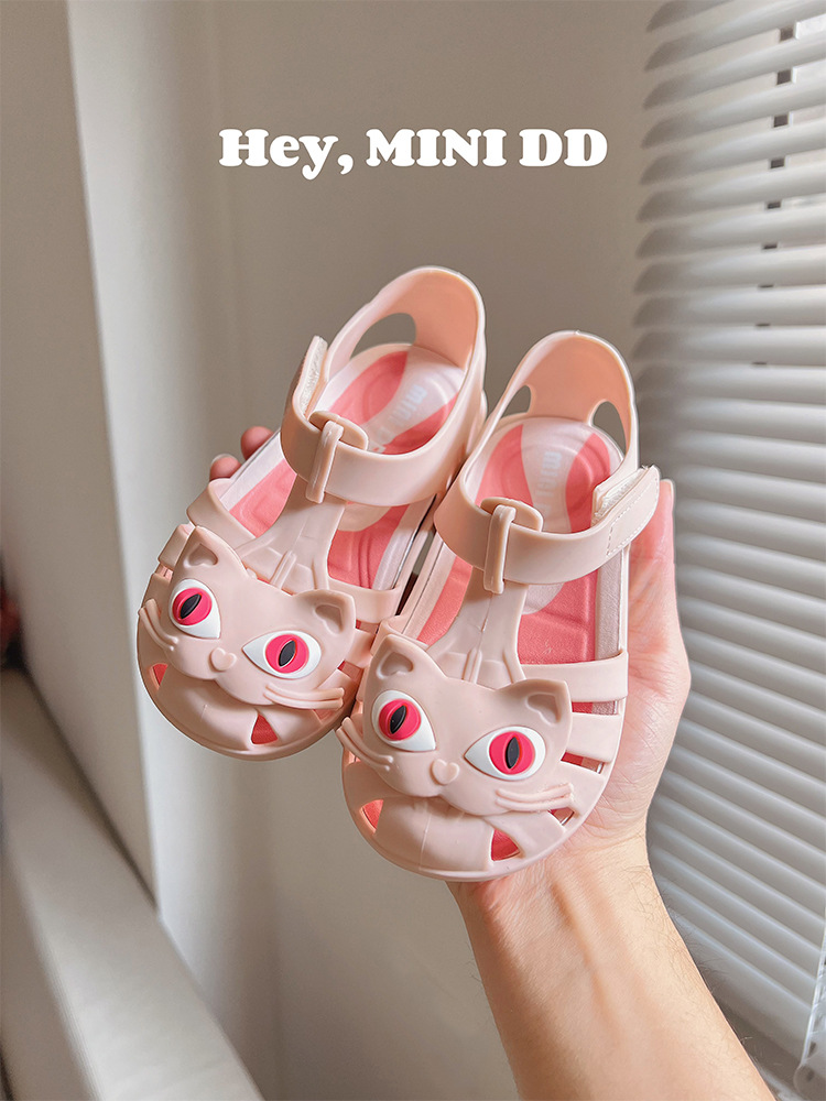 2025 새로운 어린이 고양이 젤리 신발 여름 방수 미끄럼 방지 공주 샌들 아기 만화 해변 부드러운 단독 신발