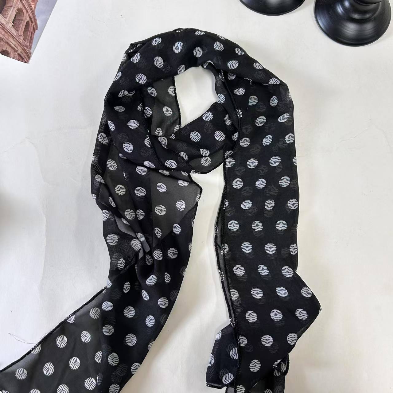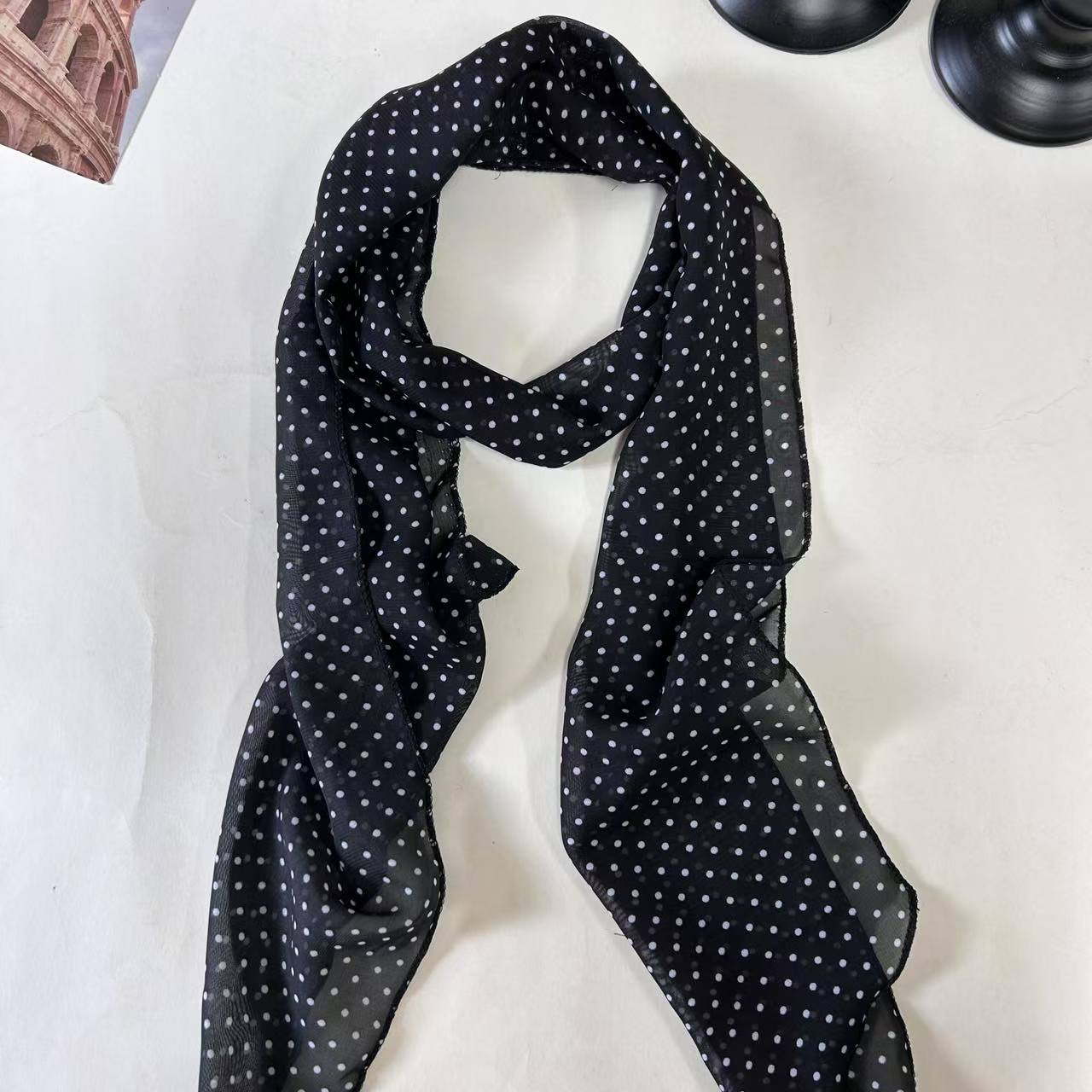 프랑스 스타일 올 매치 도트 쉬폰 스카프 이른 봄 새로운 긴 목 리본 우아한 한국 스타일 얇은 스카프 액세서리