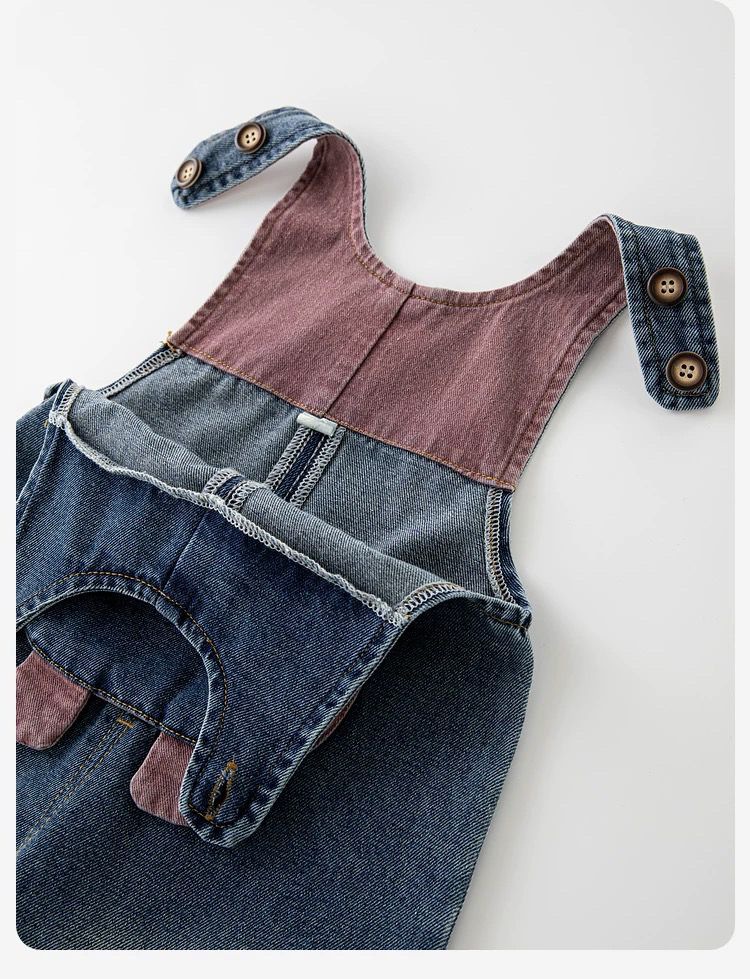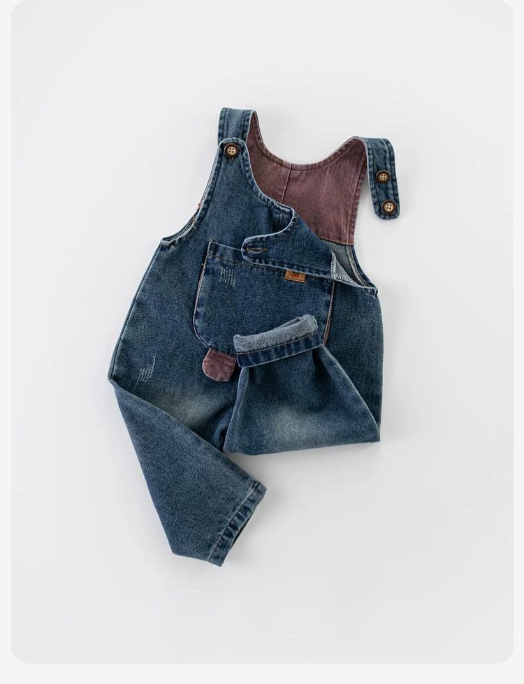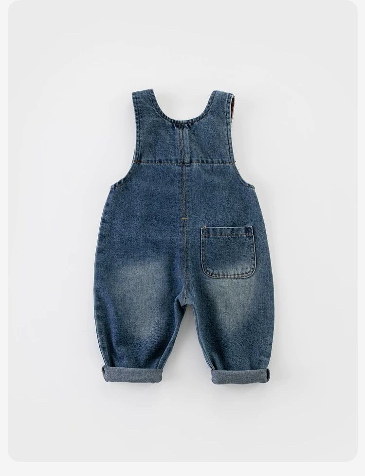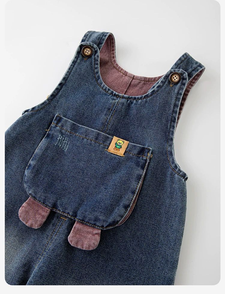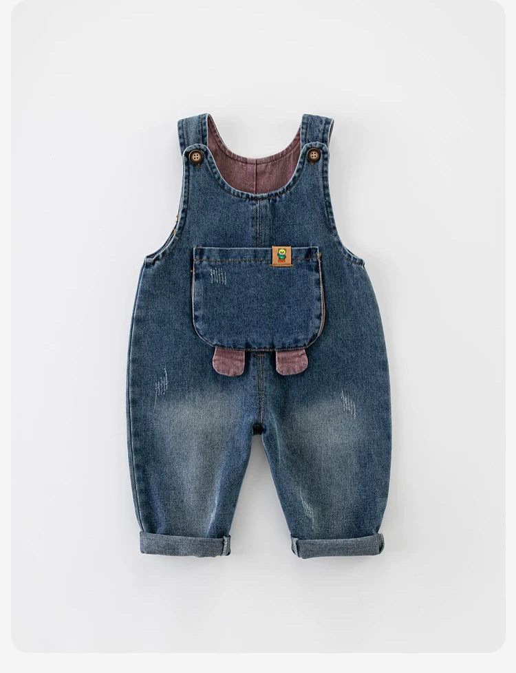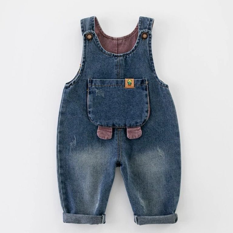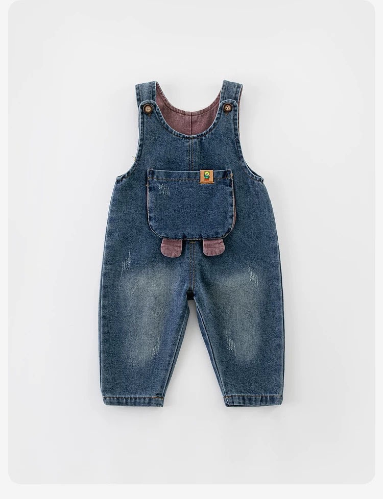 봄과 가을 남성과 여성의 아동복 데님 스트래피 아기 세련된 어린이 독특한 유행 한국 만화 큰 포켓 바지