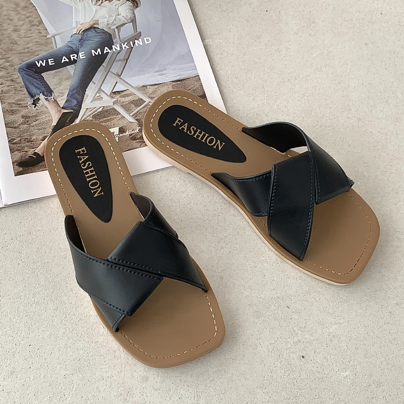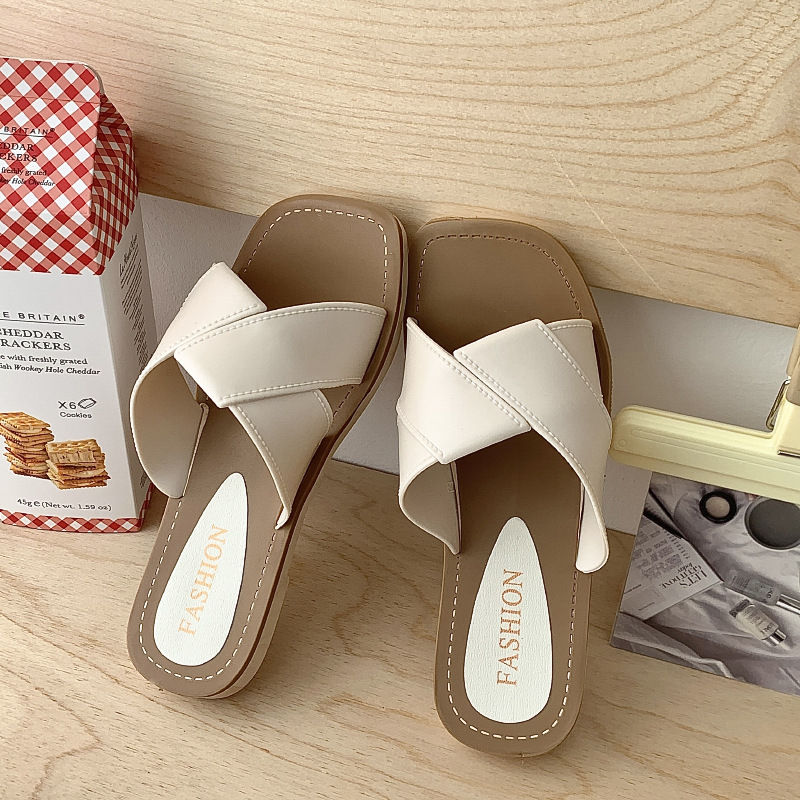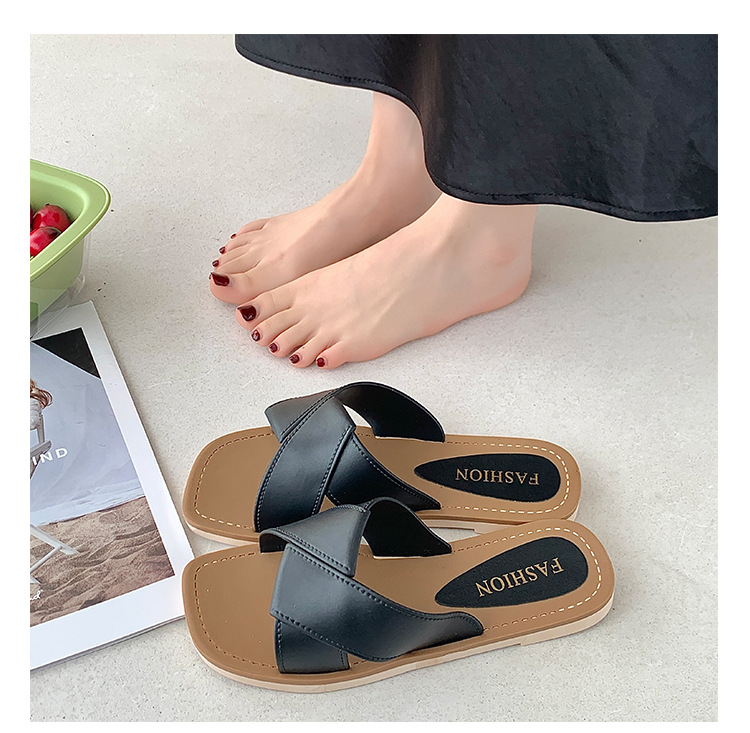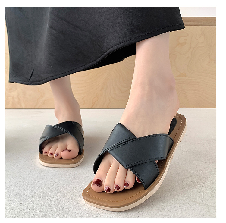 2025 봄과 여름 평평한 바닥 국가 스타일 슬리퍼 여성의 여름 외부 착용 새로운 폭발 크로스 벨트 캐주얼 해변스토어 가기