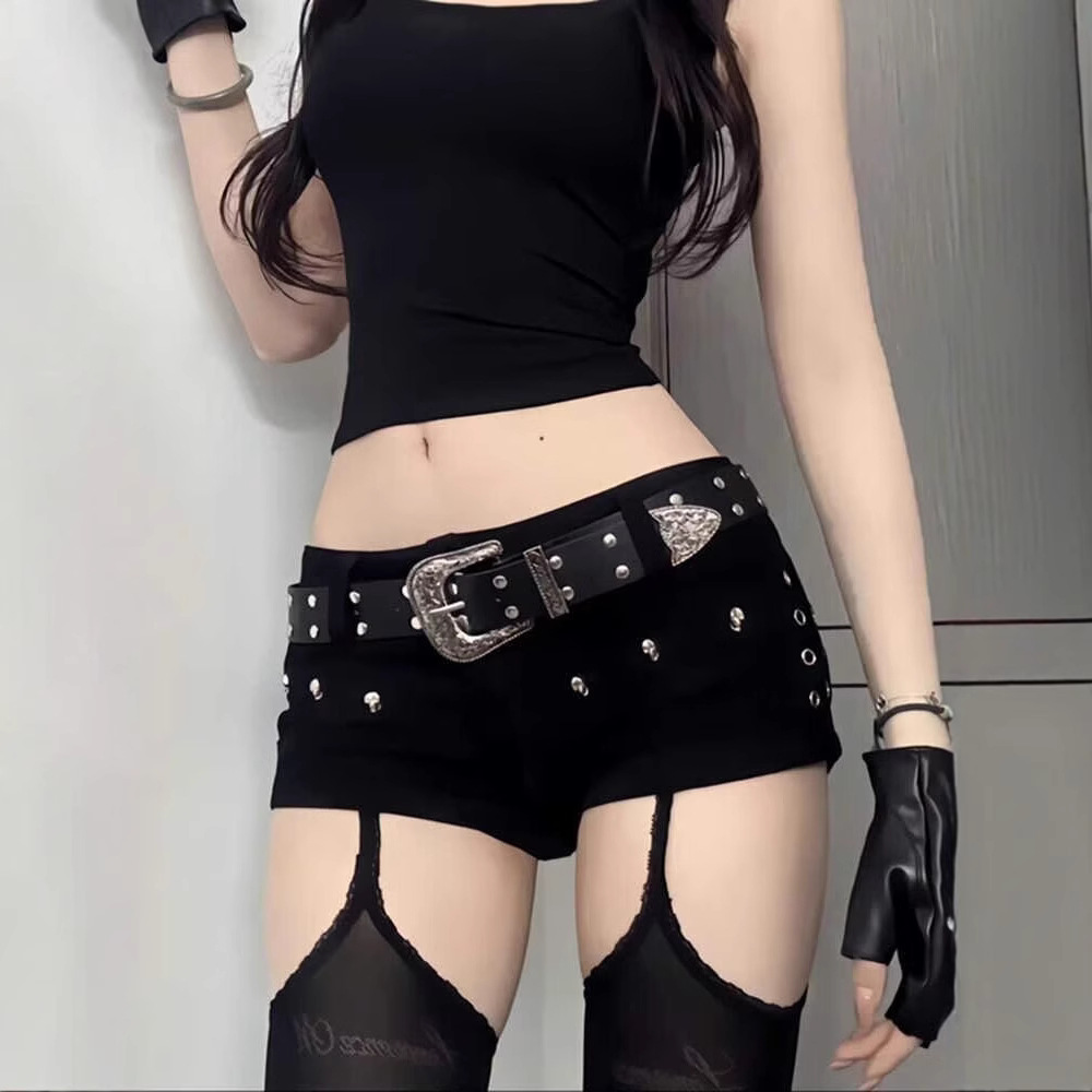 아메리칸 스타일 스파이스 걸스 디아블로 Y2K 리벳 디자인 센스 데님 슈퍼 반바지 여성 낮은 허리 슬리밍 핫 팬츠