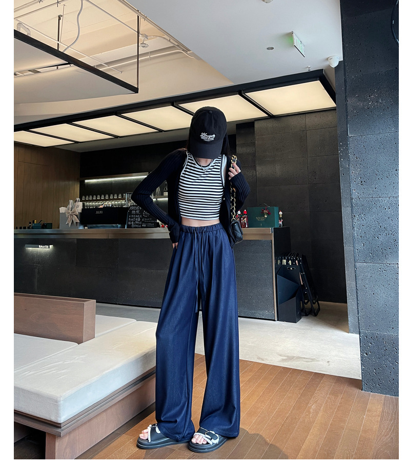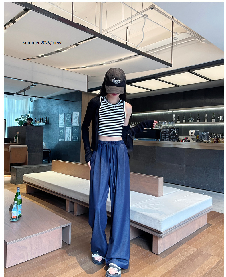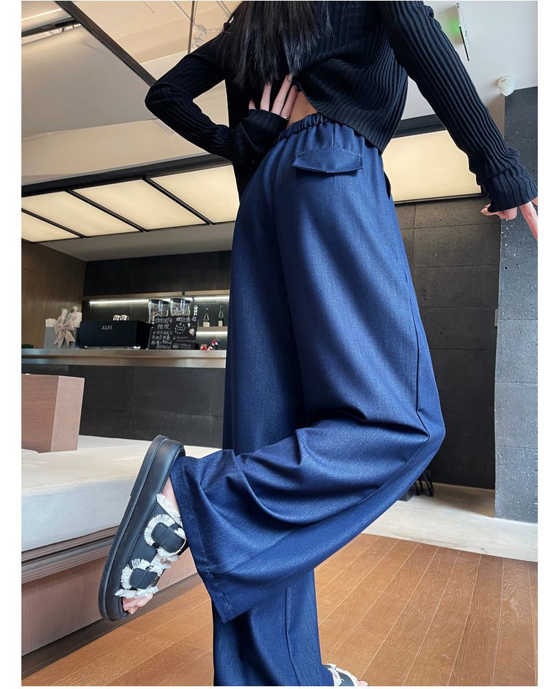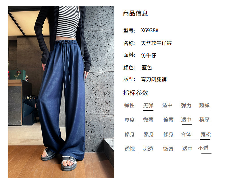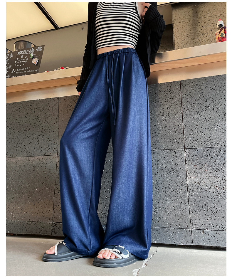 다크 블루 텐셀 청바지 여성용 여름 얇은 쿨 스트레이트 다리 바지스토어 가기