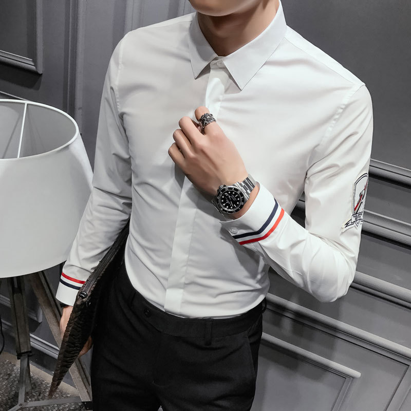 남성 캐주얼 스트레치 패션 하이 퀄리티 견장 비즈니스 셔츠 대외 무역 1011-P40스토어 가기