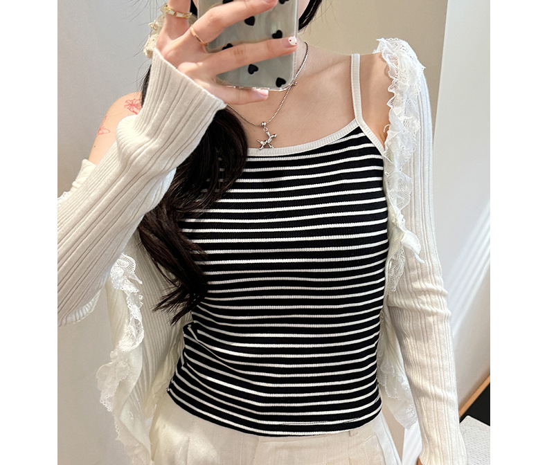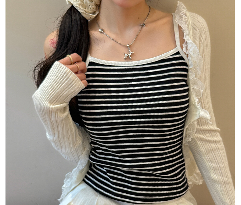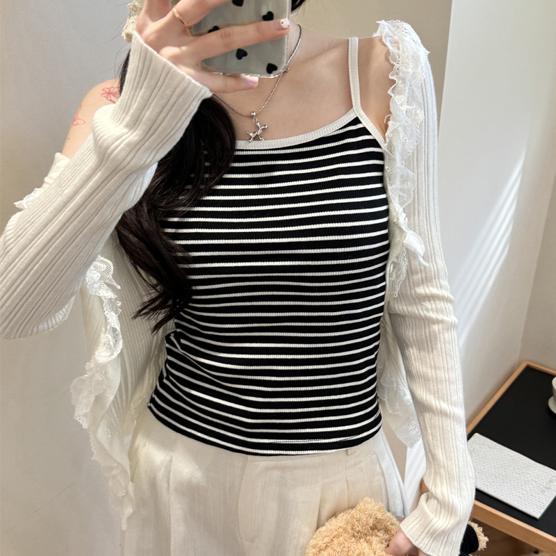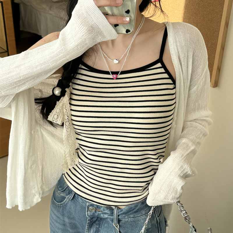 엄밀히 선정 된 2025 새로운 줄무늬 디자인 슬링 작은 조끼 여성의 순수한 욕망 백리스 짧은 내부 기본 탑