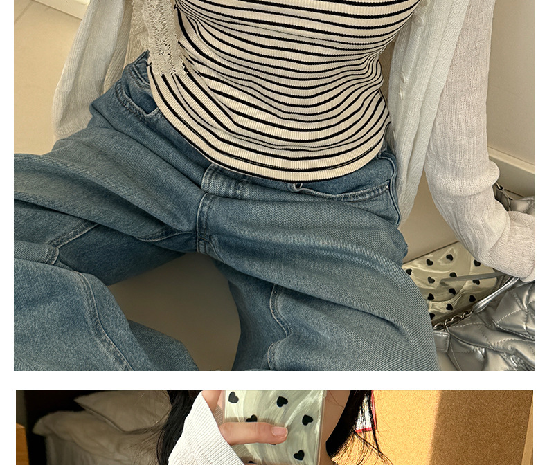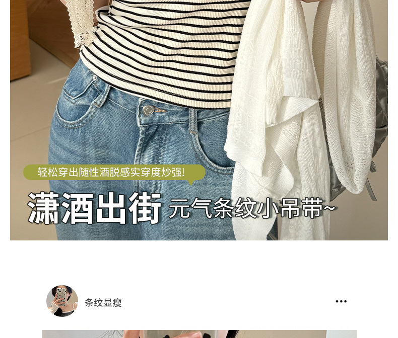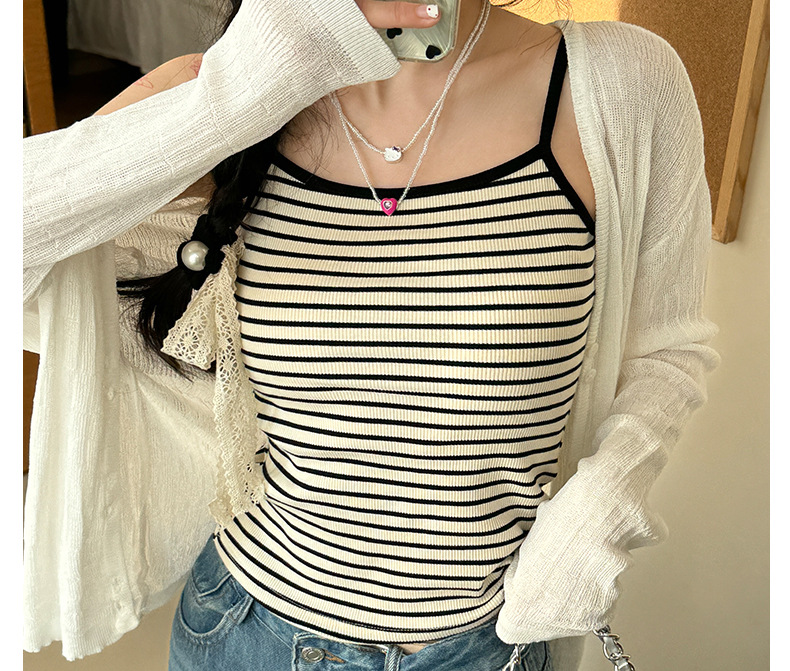 엄밀히 선정 된 2025 새로운 줄무늬 디자인 슬링 작은 조끼 여성의 순수한 욕망 백리스 짧은 내부 기본 탑스토어 가기