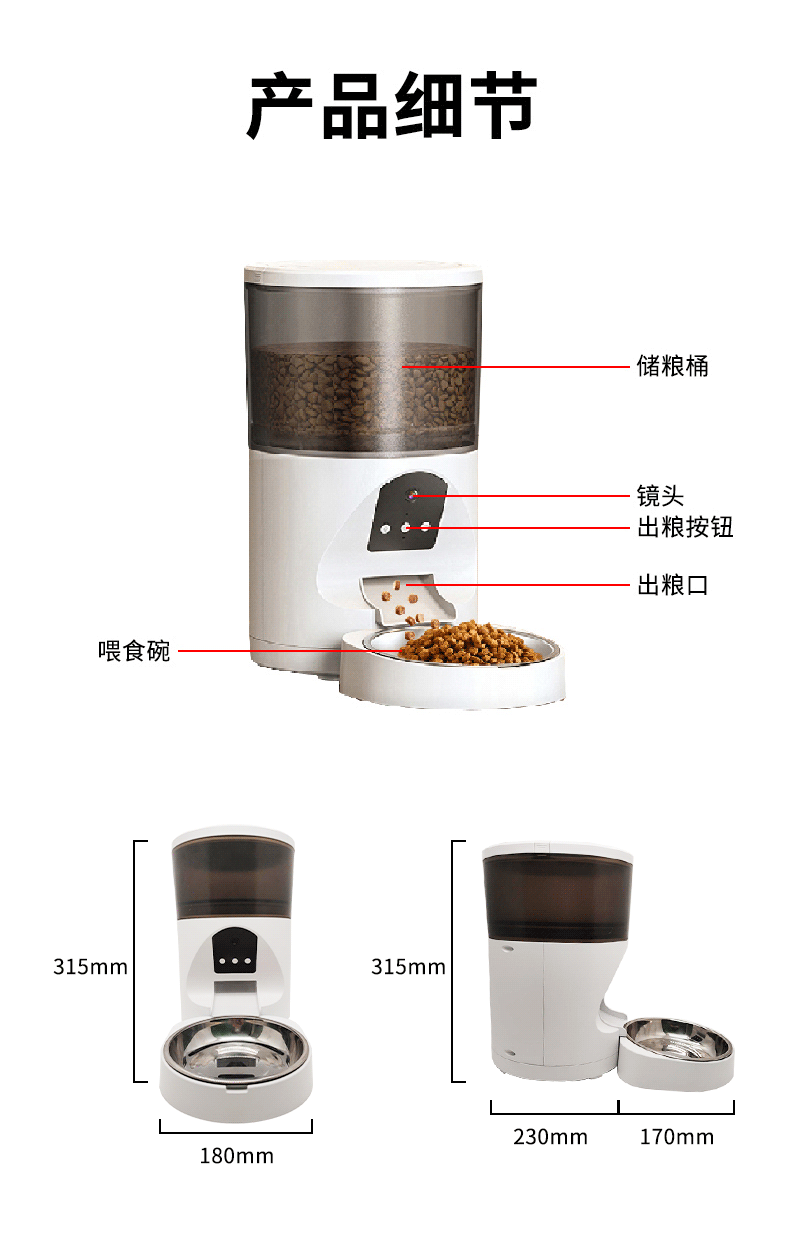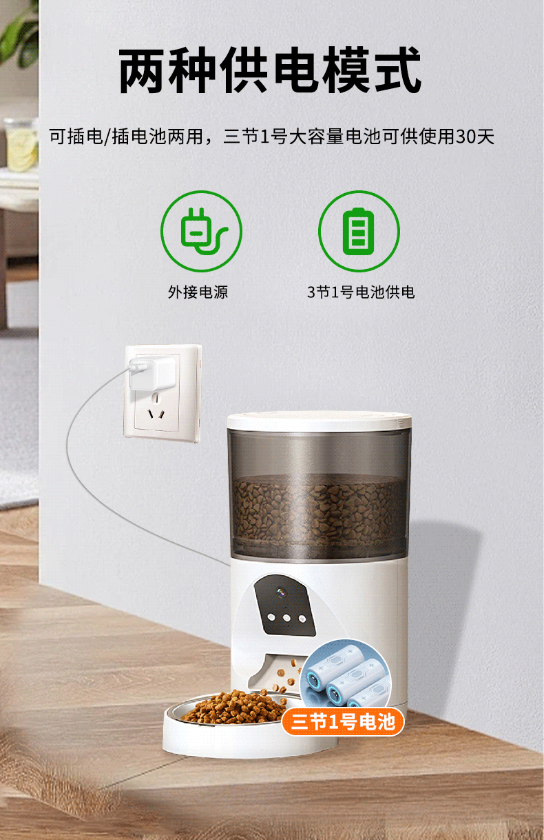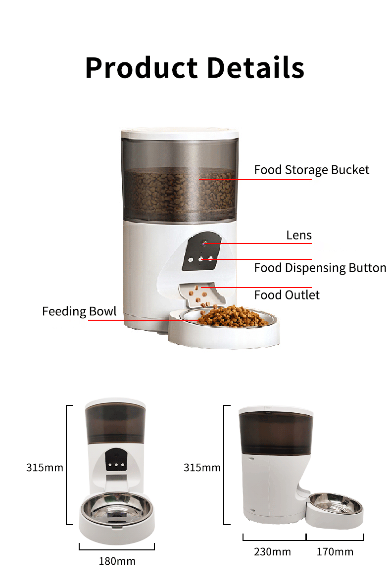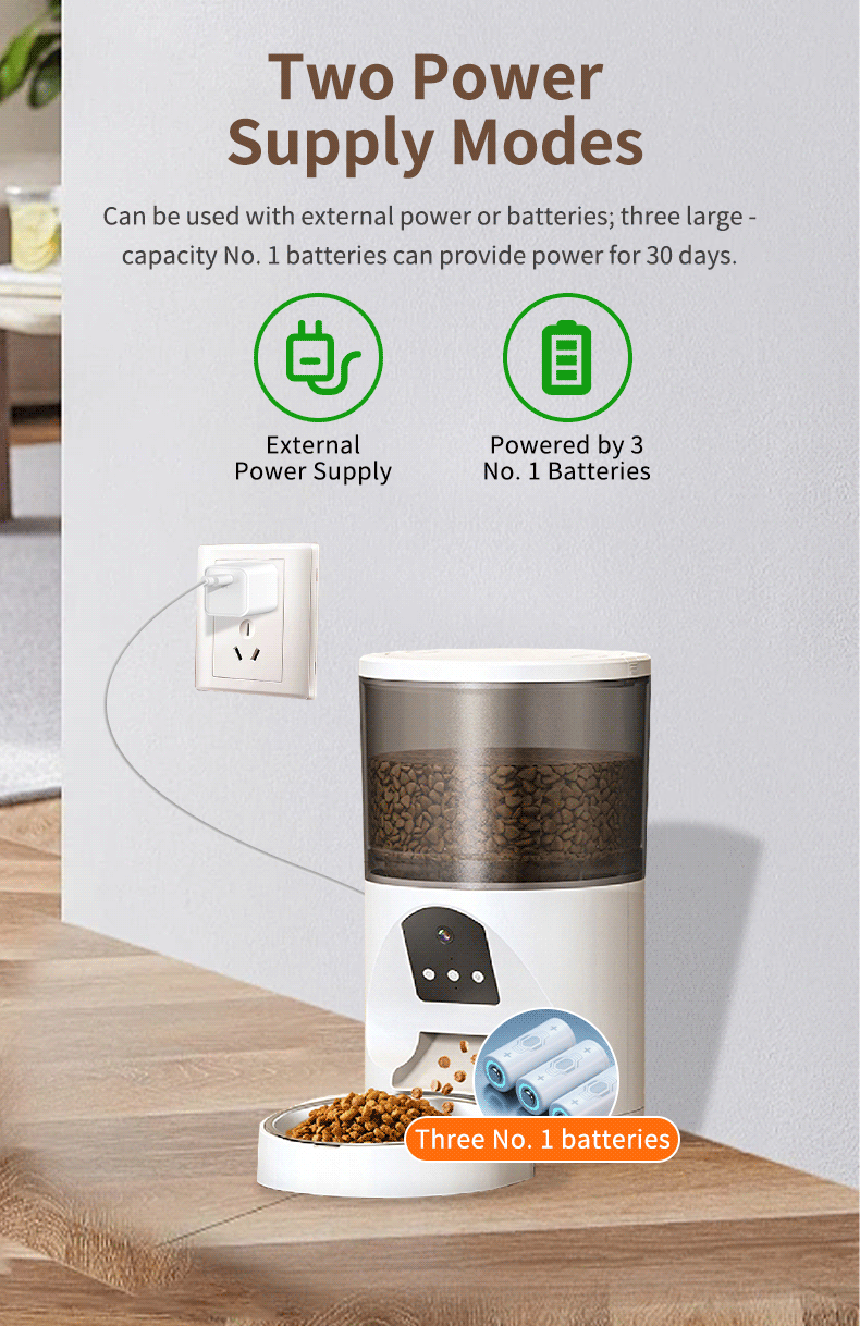 • 애완동물 급식기 + 전원 공급 장치(배터리는 포함되어 있지 않음, 앱: TSCloud)