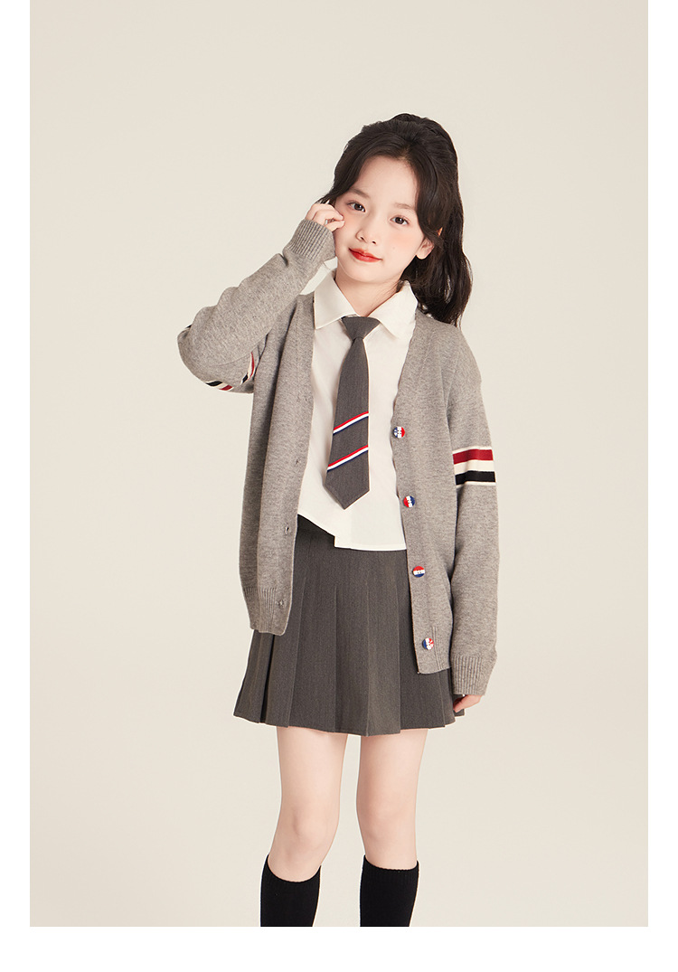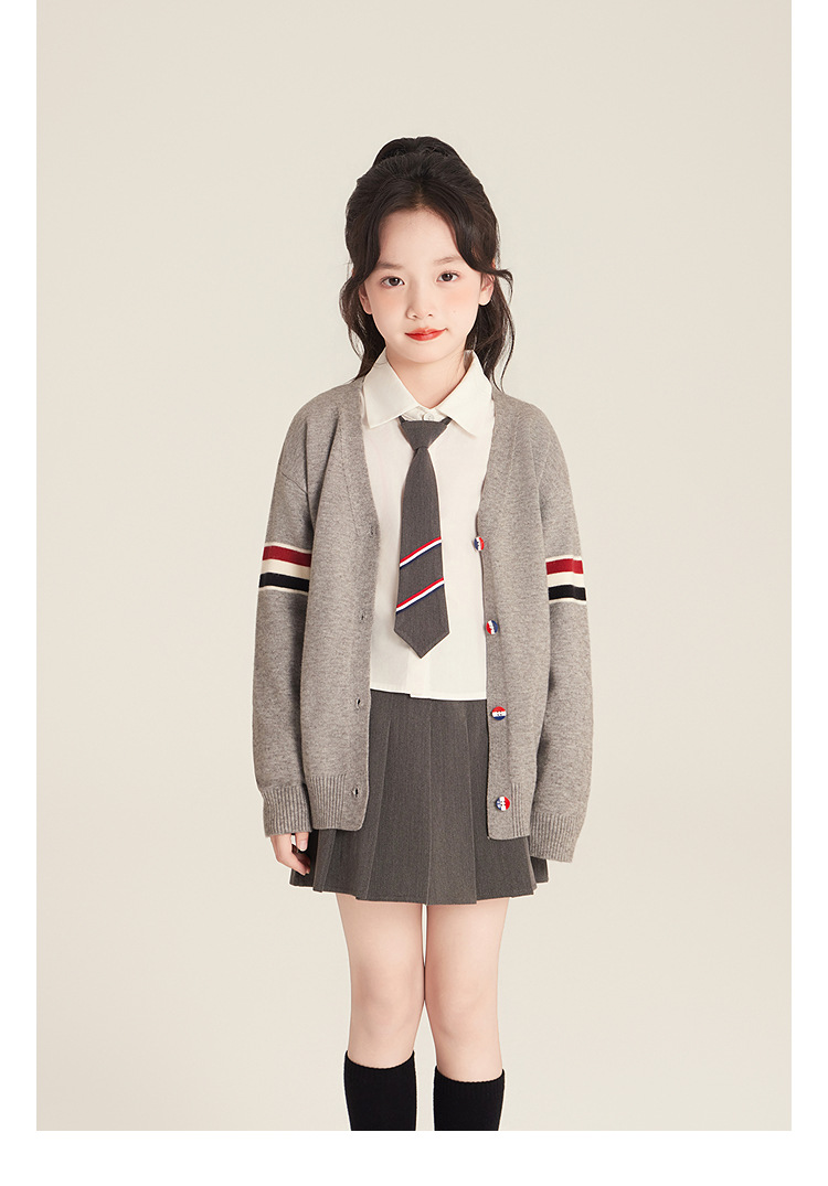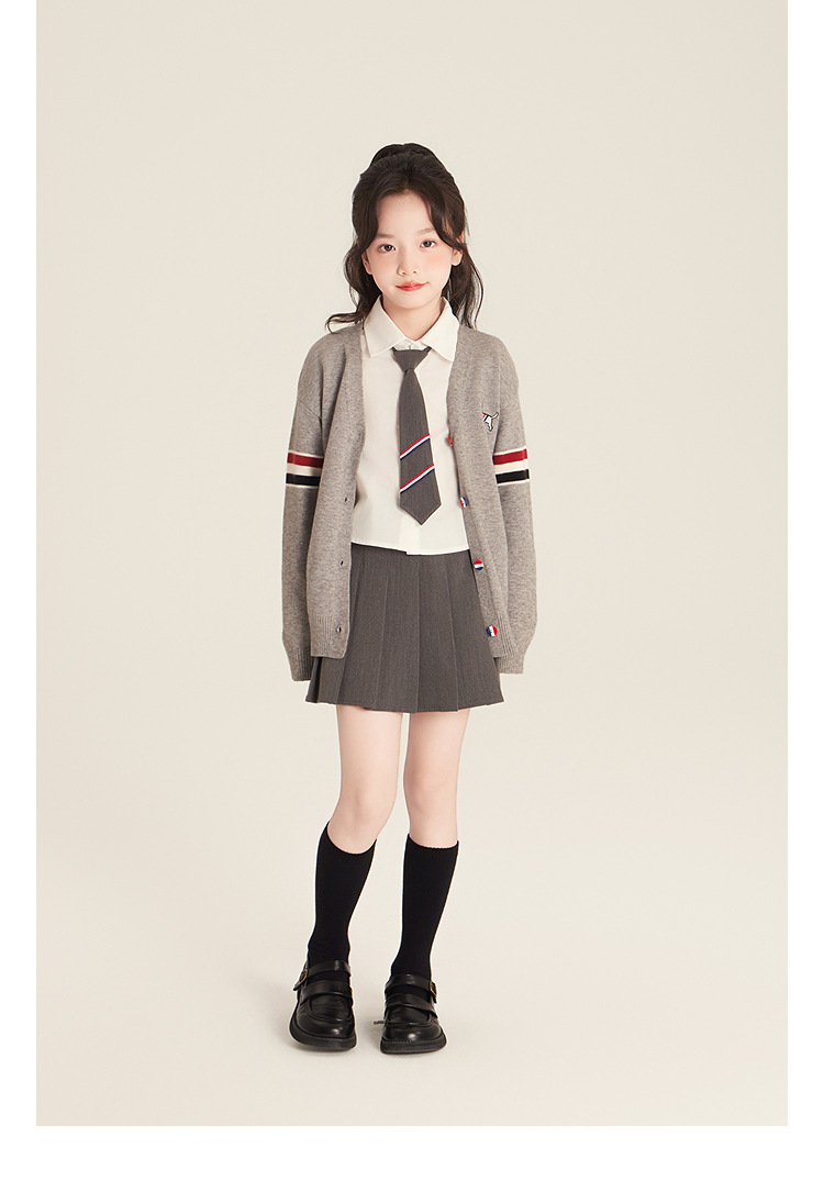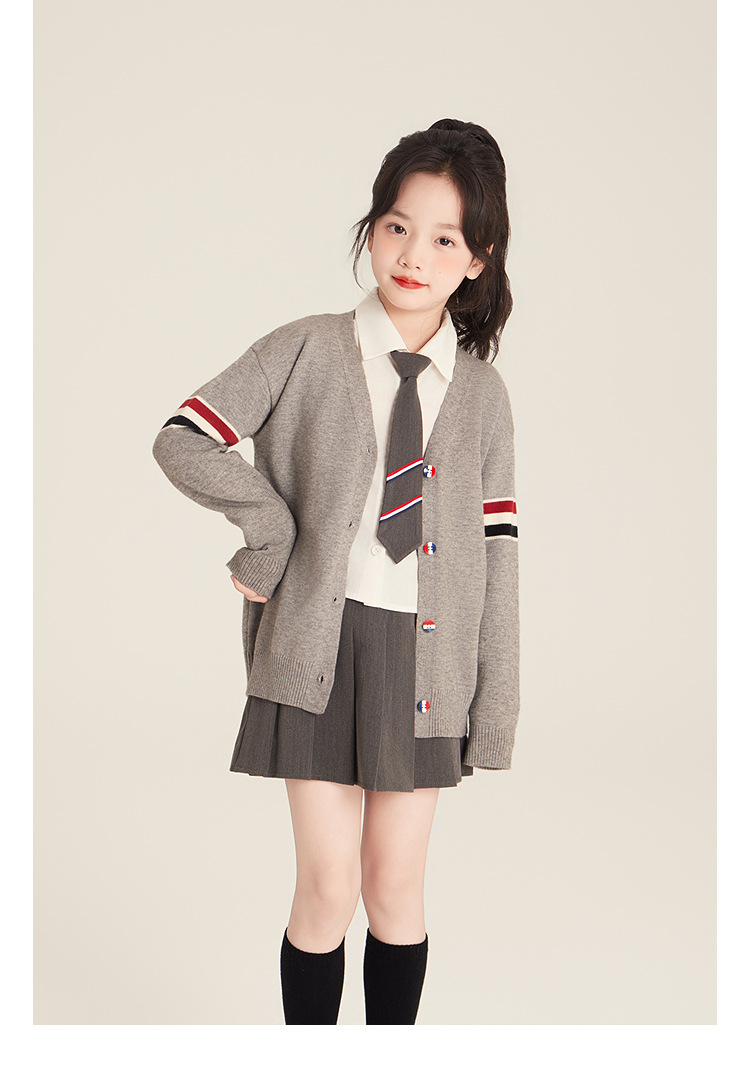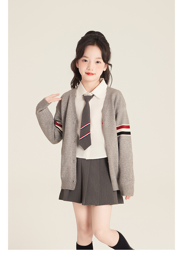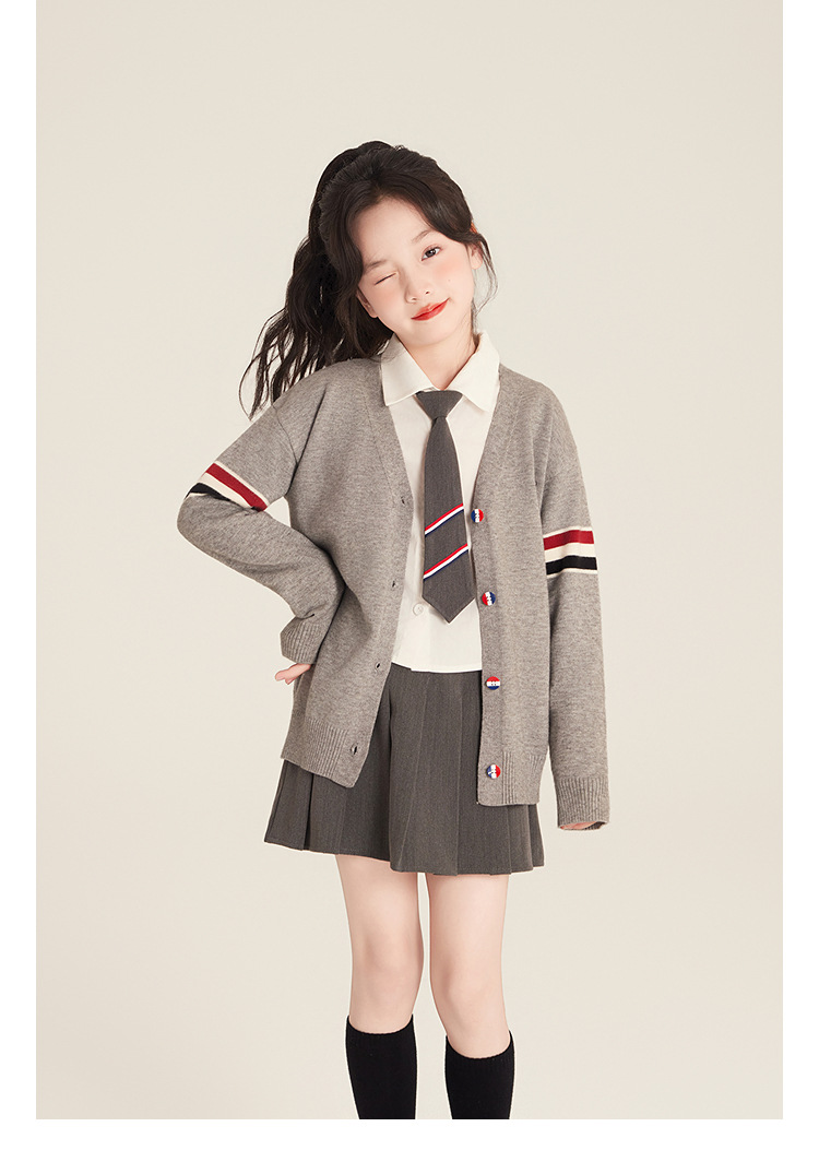 Amybaby Girls 세트 봄 2025 새로운 게으른 바람 대비 색상 강아지 수놓은 V-Neck 카디건 주름 치마
