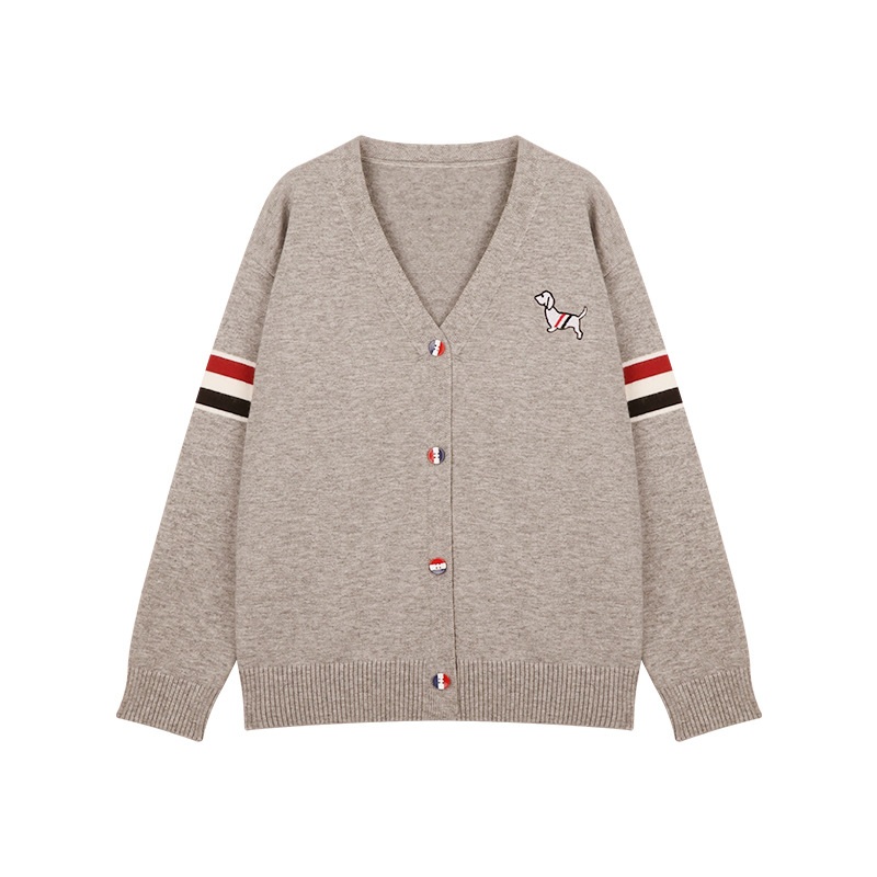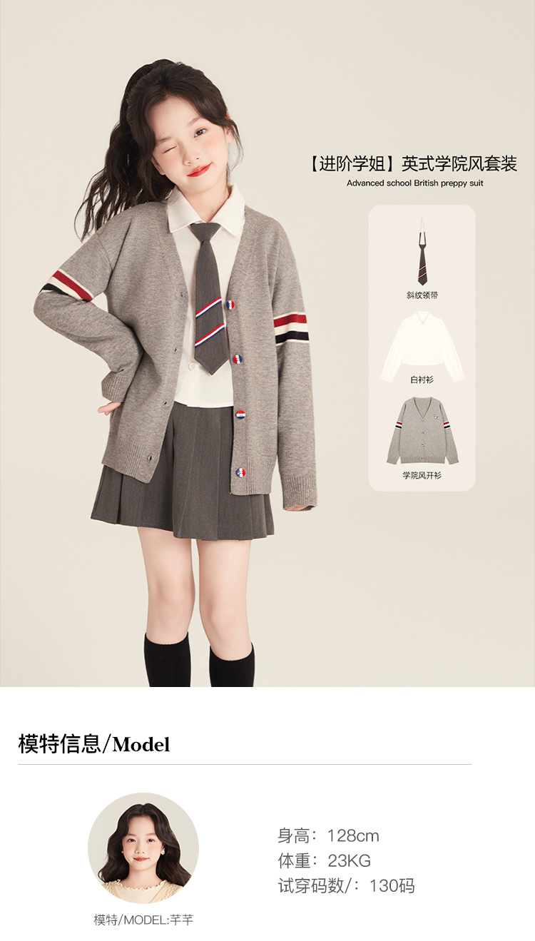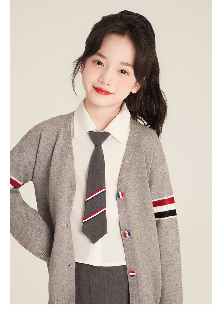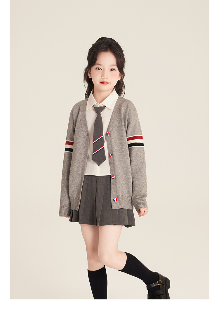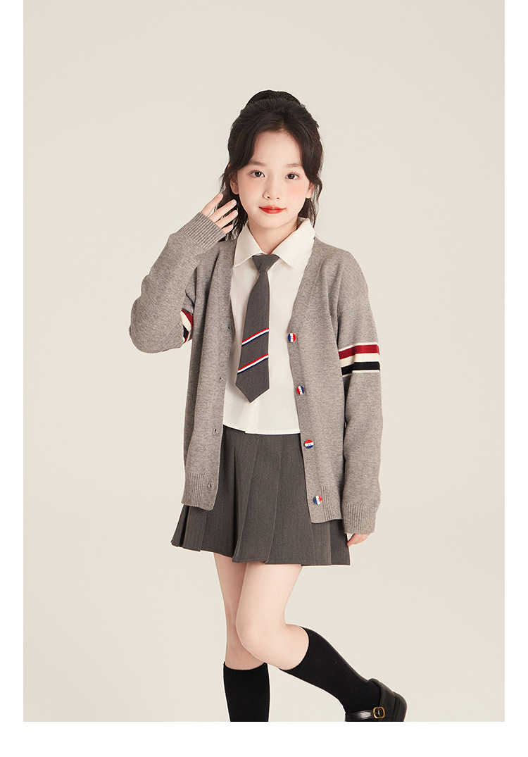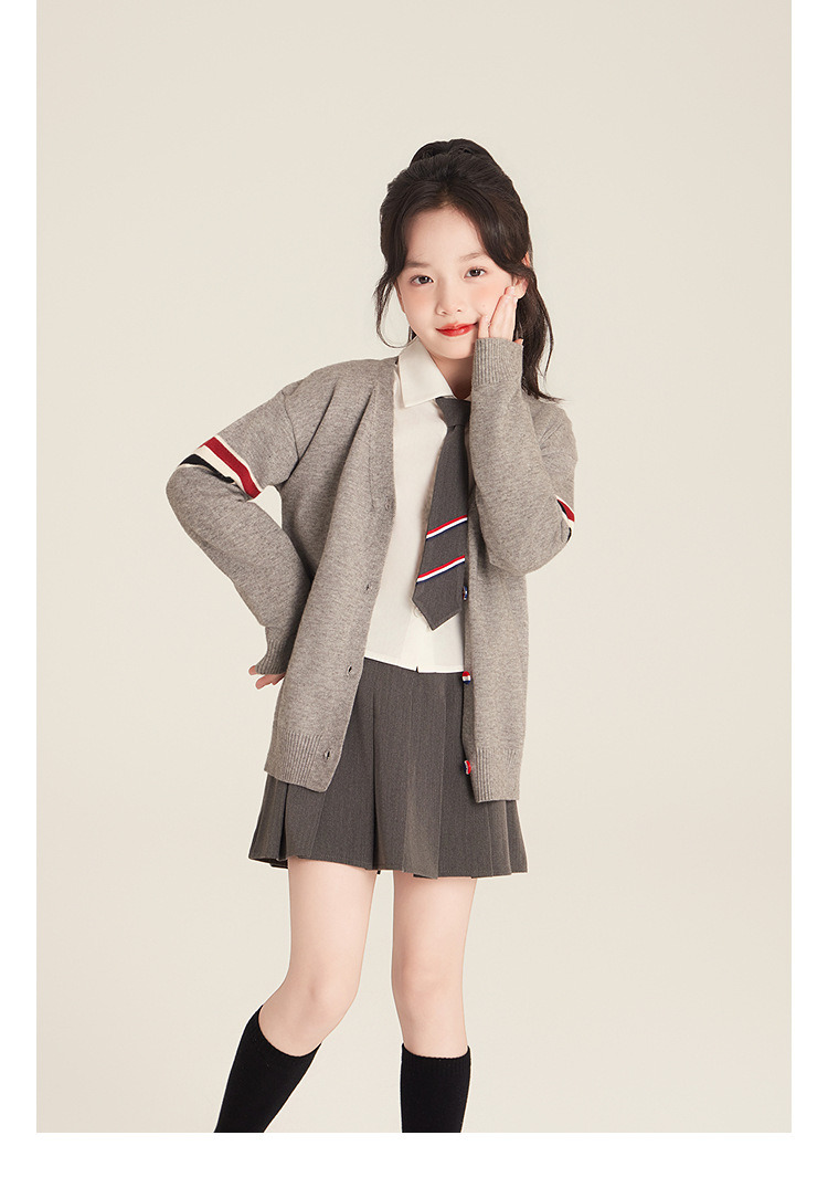 Amybaby Girls 세트 봄 2025 새로운 게으른 바람 대비 색상 강아지 수놓은 V-Neck 카디건 주름 치마