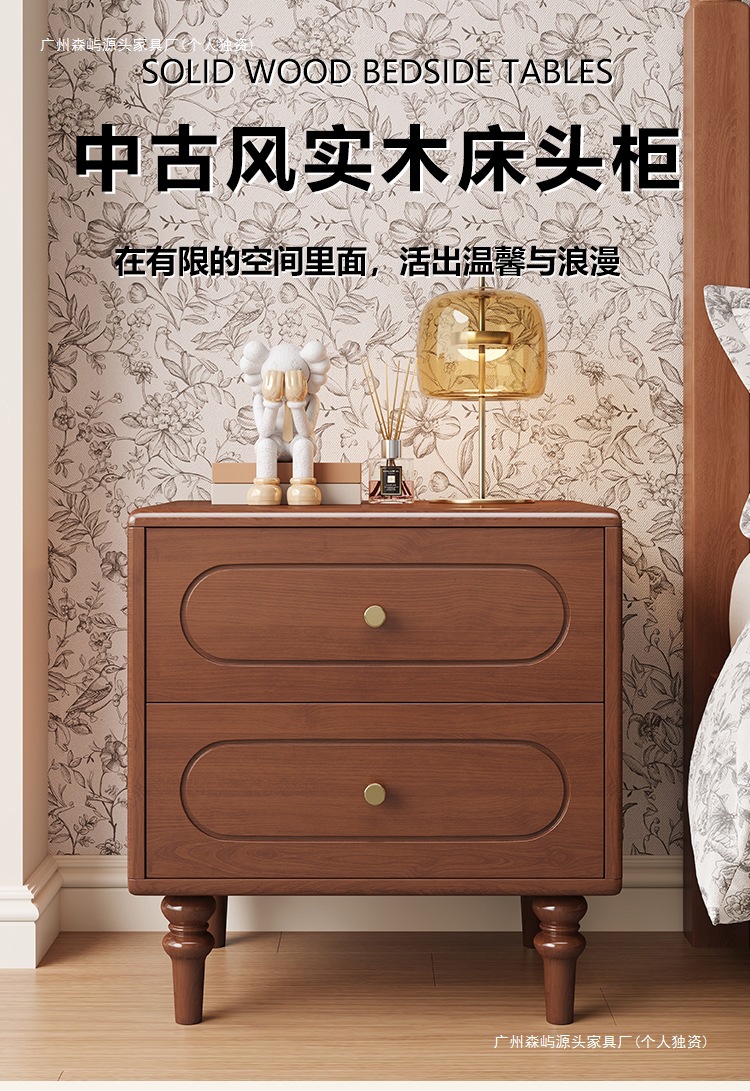 골동품 스타일의 단단한 나무 침대 옆 테이블 현대 간단한 작은 침대 옆 저장 캐비닛 미국 복고풍 고급 느낌 저장 도매