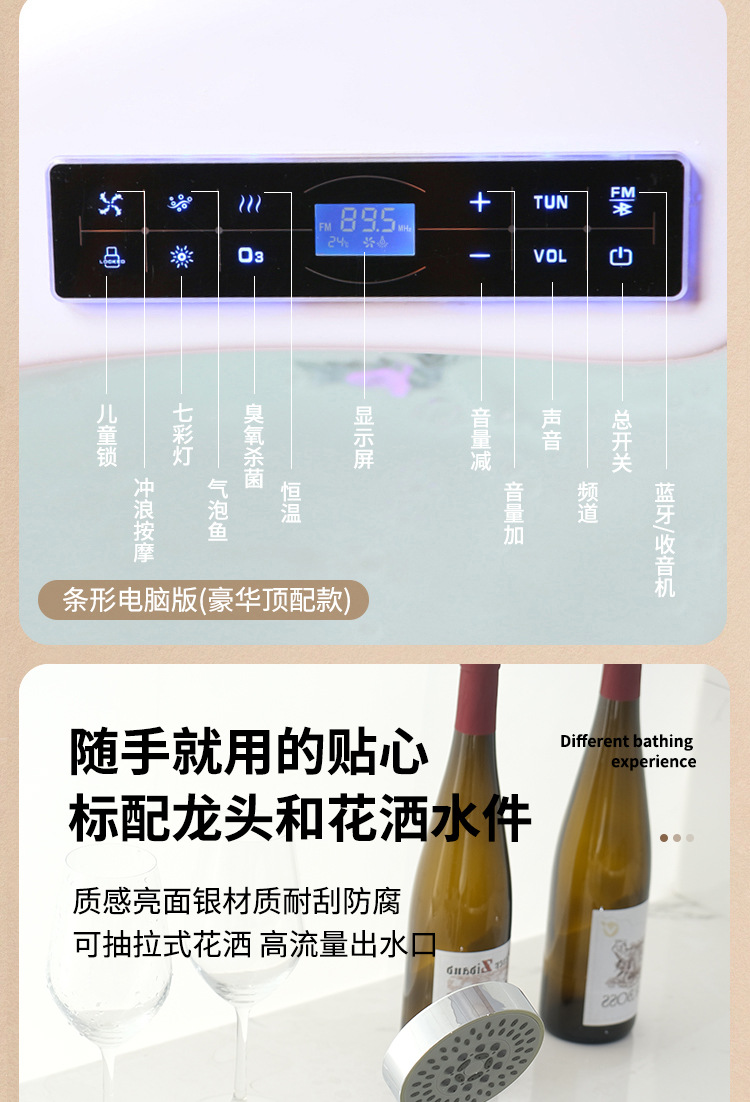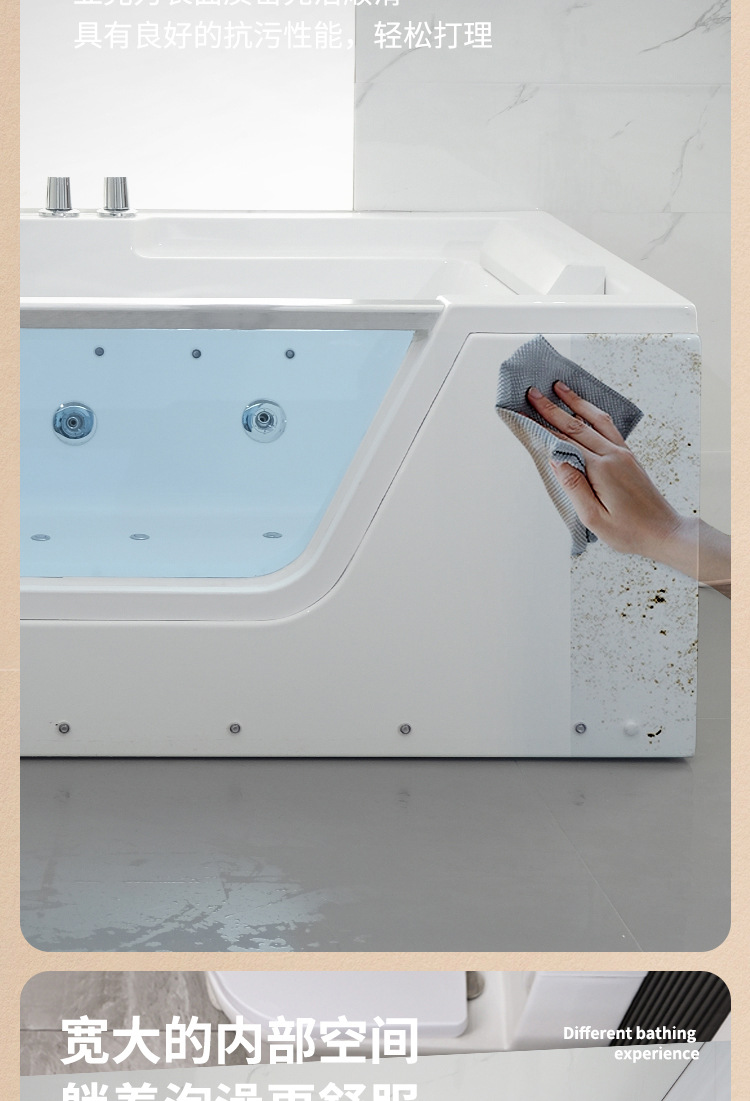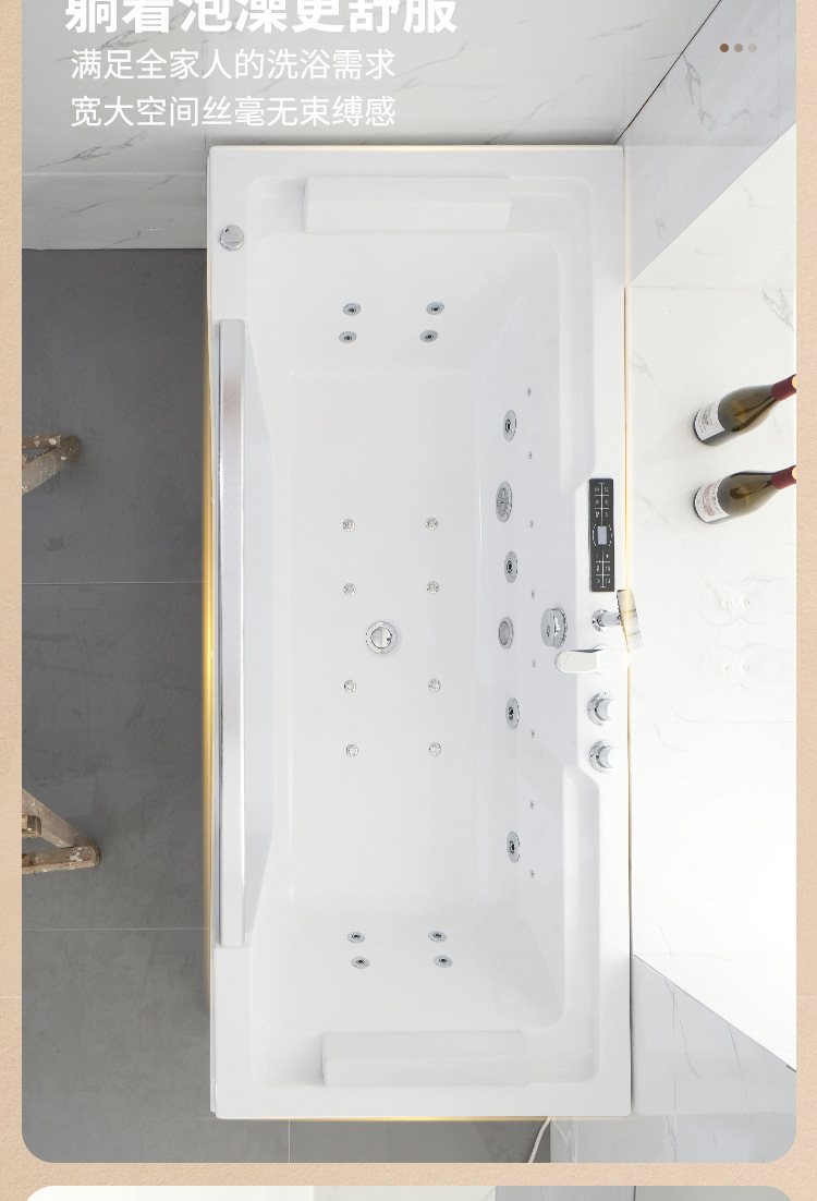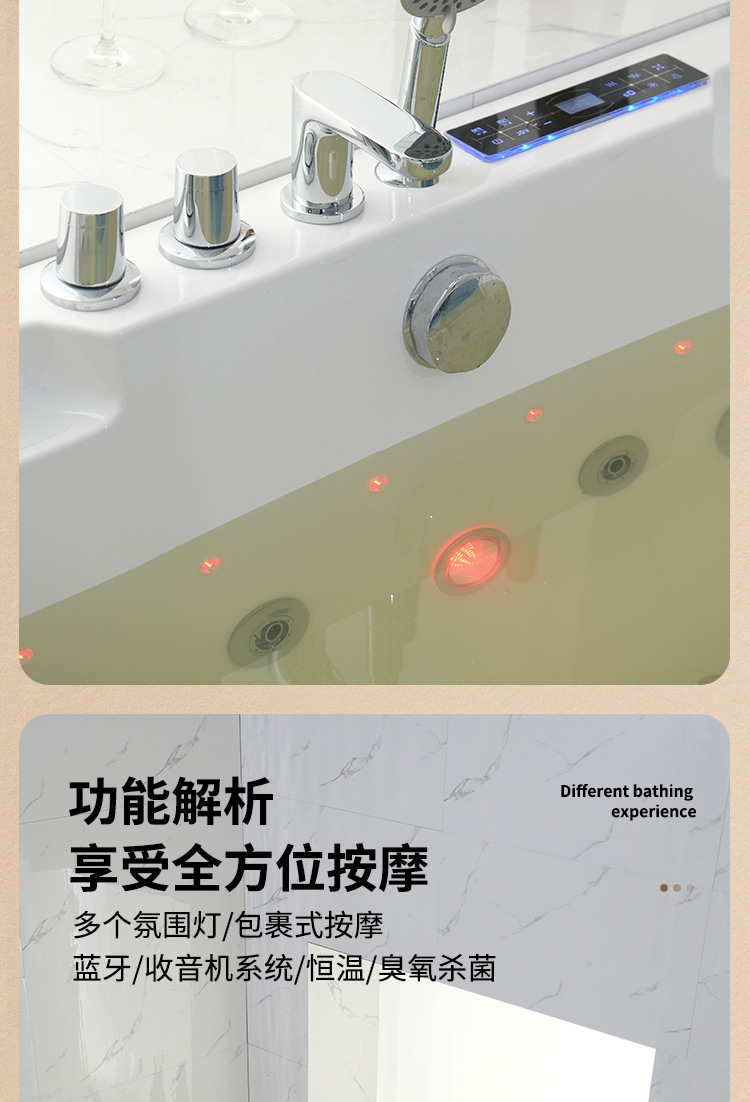 유리 욕조 마사지 서핑 욕조 아크릴 온도 조절 가열 분위기 조명 스파 기계 스파 버블 라이트 럭셔리