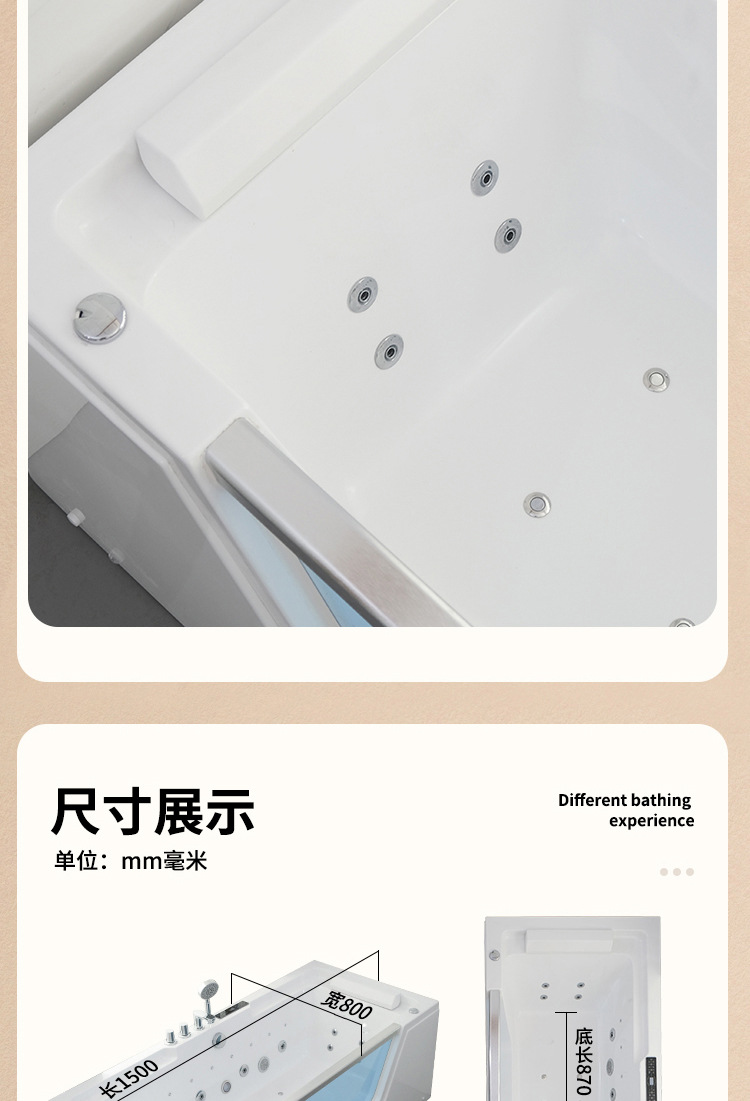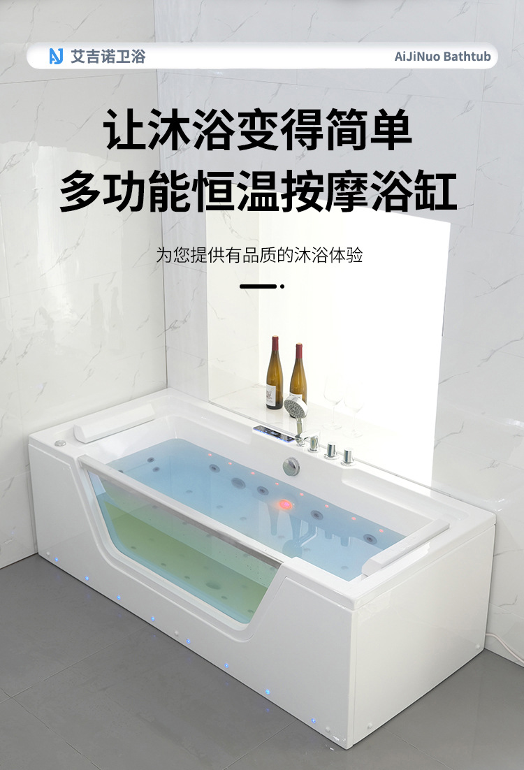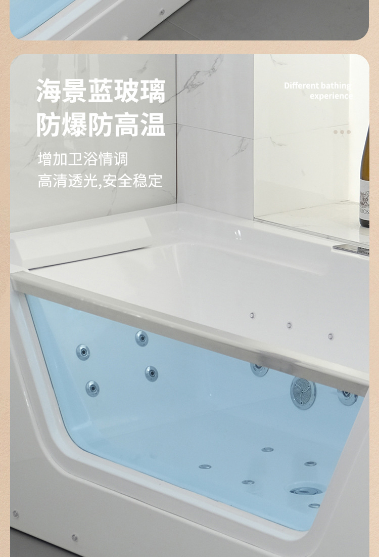유리 욕조 마사지 서핑 욕조 아크릴 온도 조절 가열 분위기 조명 스파 기계 스파 버블 라이트 럭셔리스토어 가기